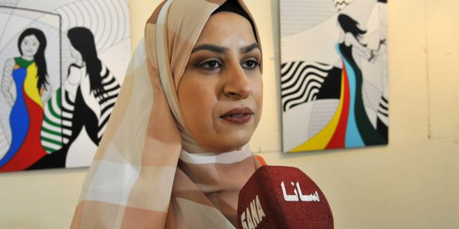 Artista siria discapacitada exhibe sus obras de arte sobre temas femeninos