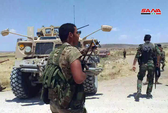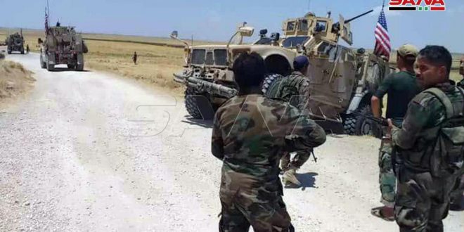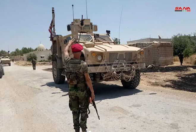 Los soldados del ejército árabe sirio interceptaron vehículos de la ocupación estadounidense y los obligaron a dar marcha atrás, reportó el corresponsal de SANA en la provincia nororiental de Hasakeh, a unos 866 kilómetros de la capital Damasco.