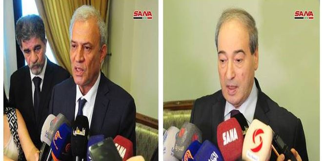 El vicecanciller sirio Faisal Mekdad, recibió en Damasco al vicepresidente del Consejo de Ministros de Palestina, Ziad Abu Omro.