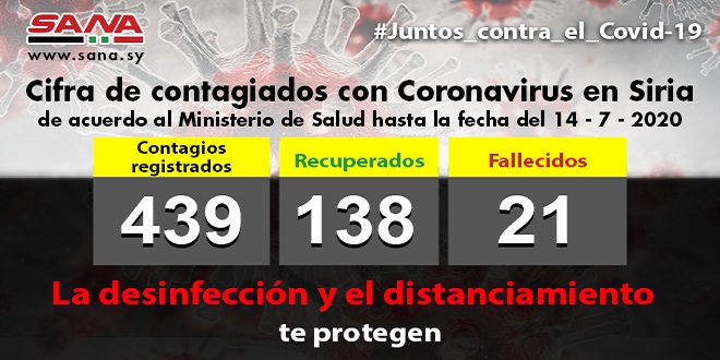 El Ministerio de Salud anunció en un comunicado la detección de 22 nuevos casos del nuevo Coronavirus en el país, hecho que eleva el balance de contagios en Siria a 439.