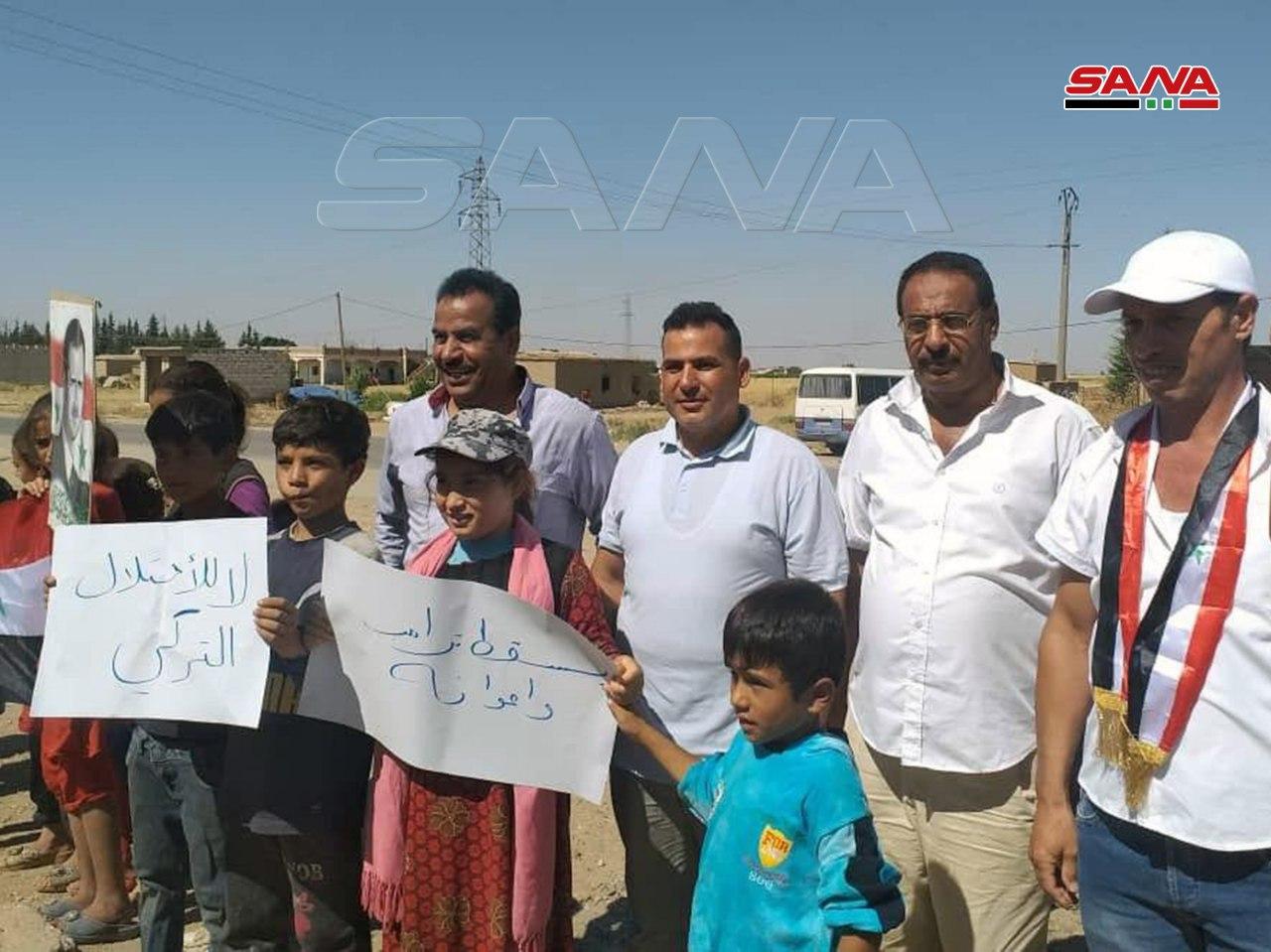 Los lugareños de la localidad de Abu Zuel perteneciente al municipio de Qamishli, se congregaron hoy para expresar su enérgico rechazo a la ocupación de Turquía y EE.UU de partes del territorio de su país.