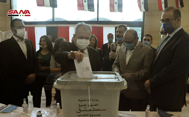 Asimismo, el Primer Ministro, Hussein Arnous, y el viceprimer ministro y ministro de Exteriores y Emigrantes, Walid al-Moallem, ejercieron su derecho al voto en las elecciones legislativas en el centro electoral en la sede del Ministerio de Exteriores y Emigrantes.