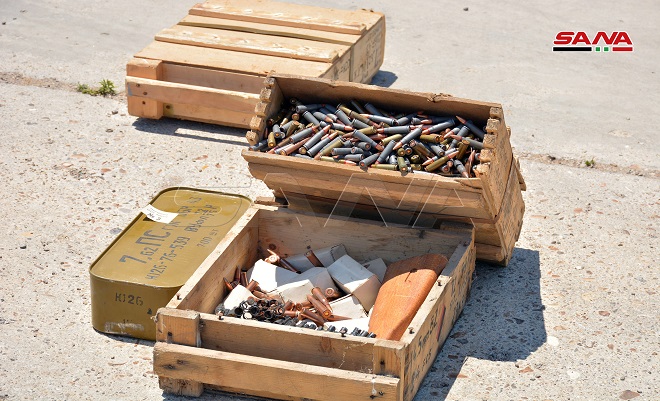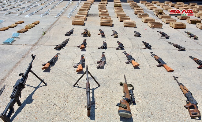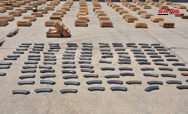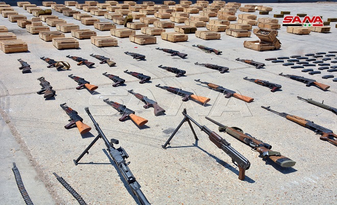 Las autoridades competentes confiscaron hoy una gran cantidad de armas y municiones destinadas a los grupos terroristas en el norte de la provincia septentrional de Idleb.