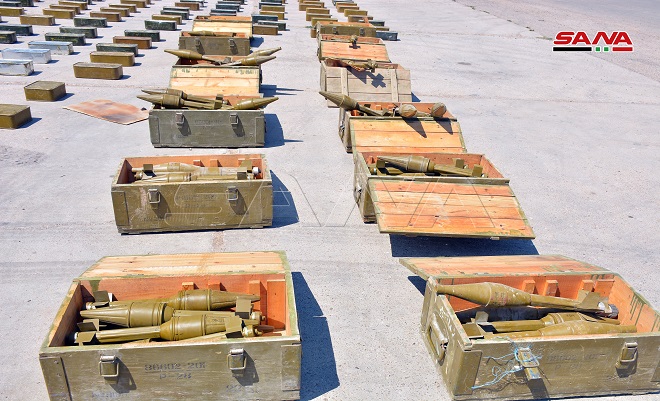 “El material bélico confiscado incluyó grandes cantidades de municiones medianas y ligeras, armas automáticas, proyectiles de “RPG”, ametralladoras medianas y cargas explosiva”, informó el reportero de SANA.