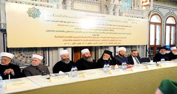 El Ministerio de Asuntos Religiosos ha celebrado este domingo en la Mezquita de Al-Othman en Damasco su conferencia general anual bajo el título “la ideología de la crisis de cara a la ideología de la sedición… El sistema ético para consagrar los valores morales y el patriotismo….nuestra religión es una religión de tolerancia y no es una religión de ideas takfiríes, es una religión de construcción y de morales y no de extremismo y agresión”.