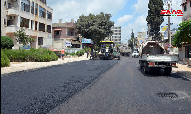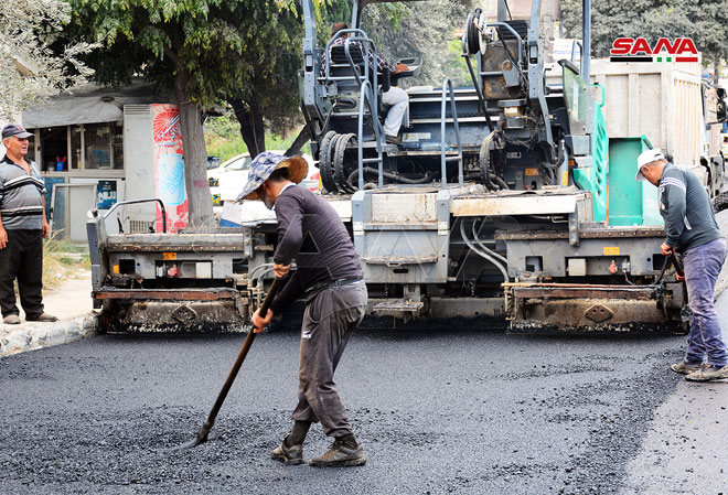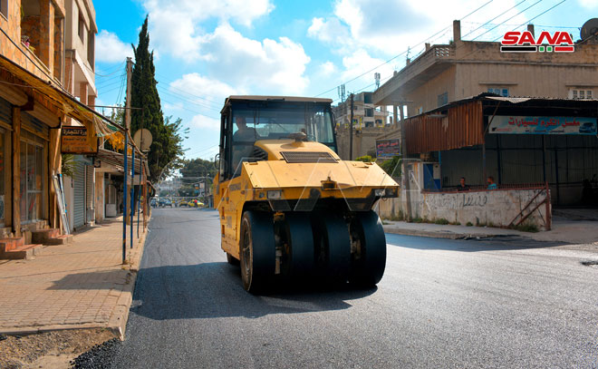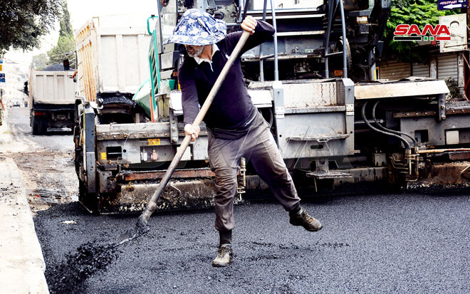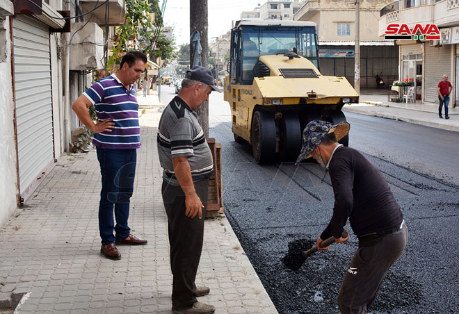 A pesar del bloqueo y la guerra, continúan las obras de pavimentación de las calles en Latakia. (fotos)