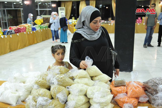 Con fin de garantizar productos a precios asequibles en vísperas de Eid Al-Adha (fiesta musulmana del sacrificio), fue inaugurada la feria popular de compras en la ciudad de Hettieh Al-Turkman, en la carretera del Aeropuerto Internacional de Damasco.