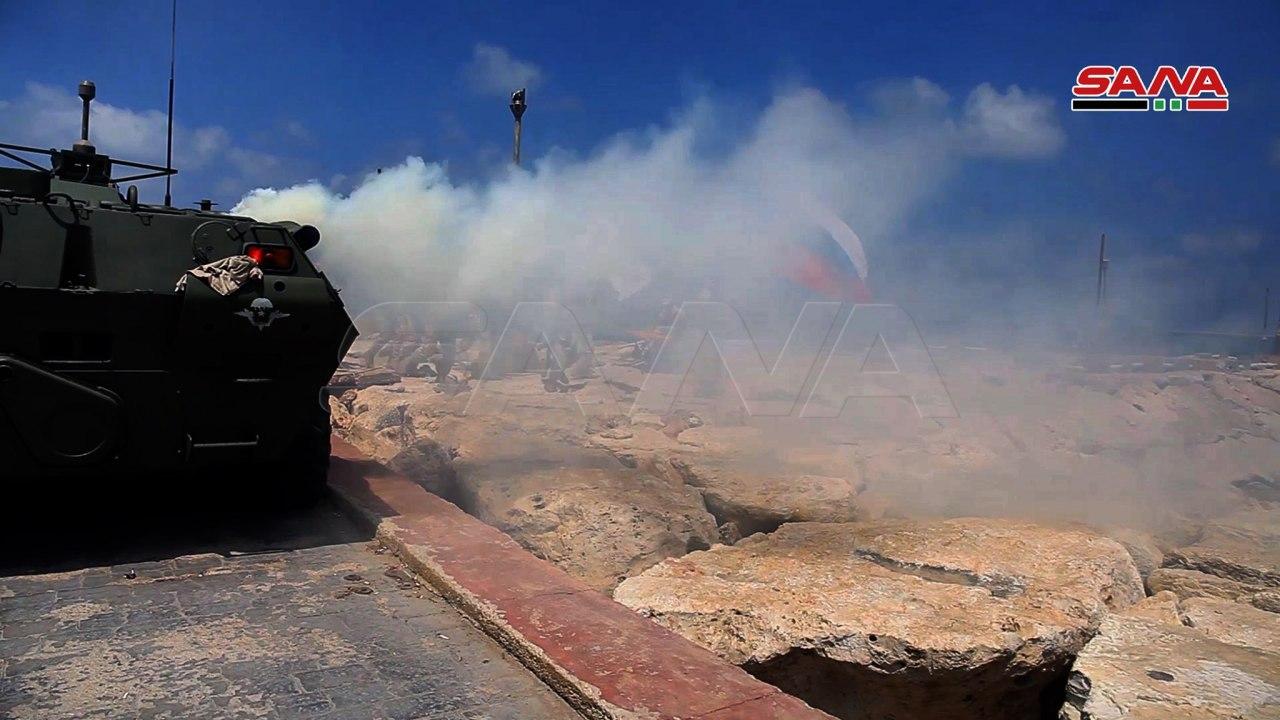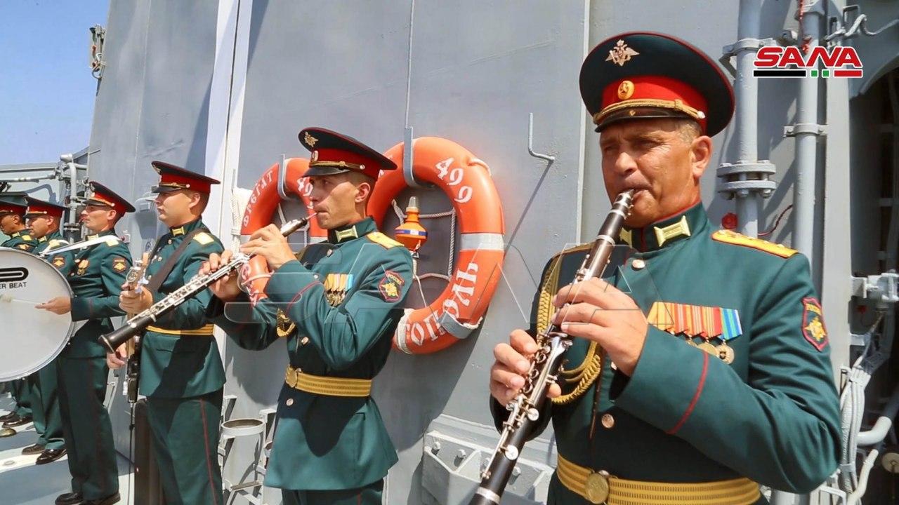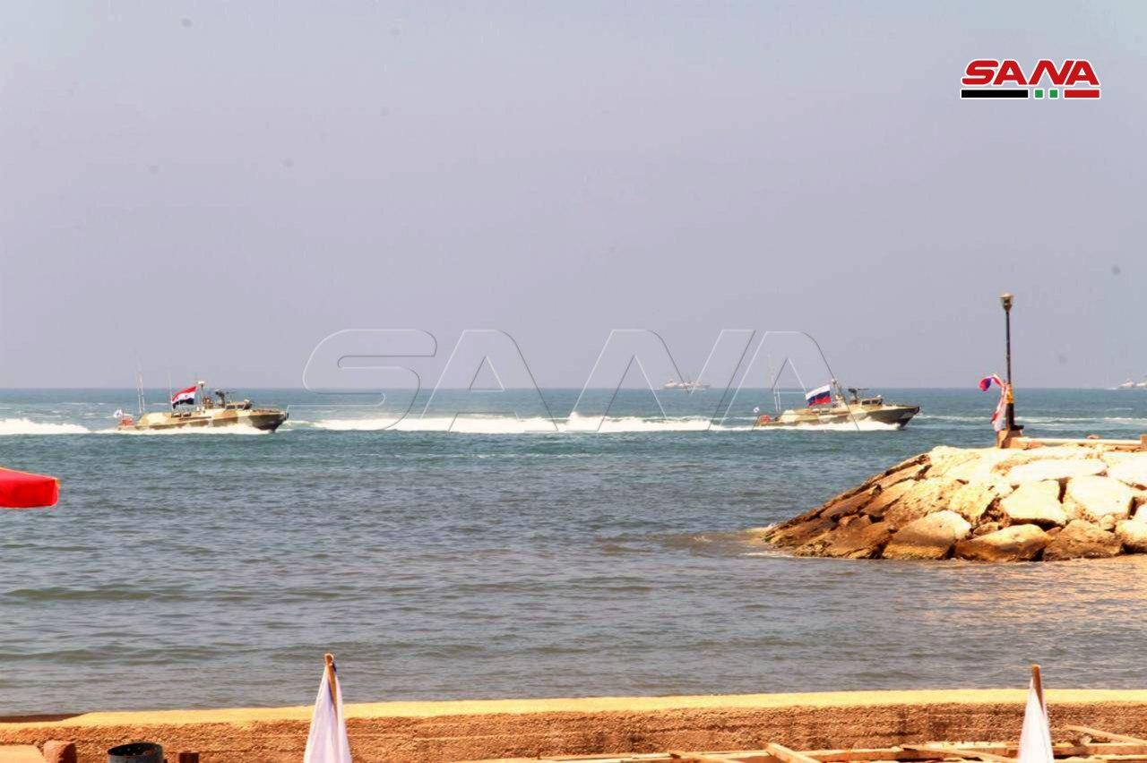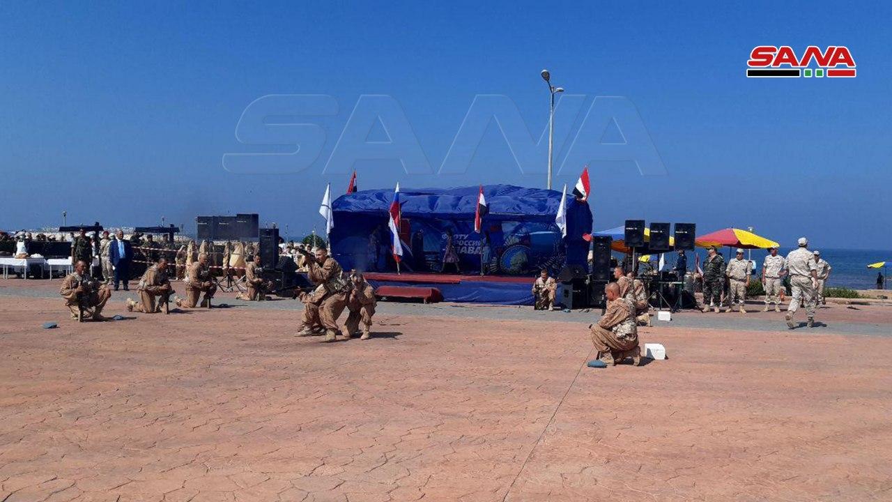 Los buques sirios y rusos realizaron un desfile naval conjunto, y luego varios buques modernos y submarinos de la flota naval rusa, además de aviones de combate y helicópteros y algunas fragatas de la armada siria llevaron a cabo ejercicios militares.