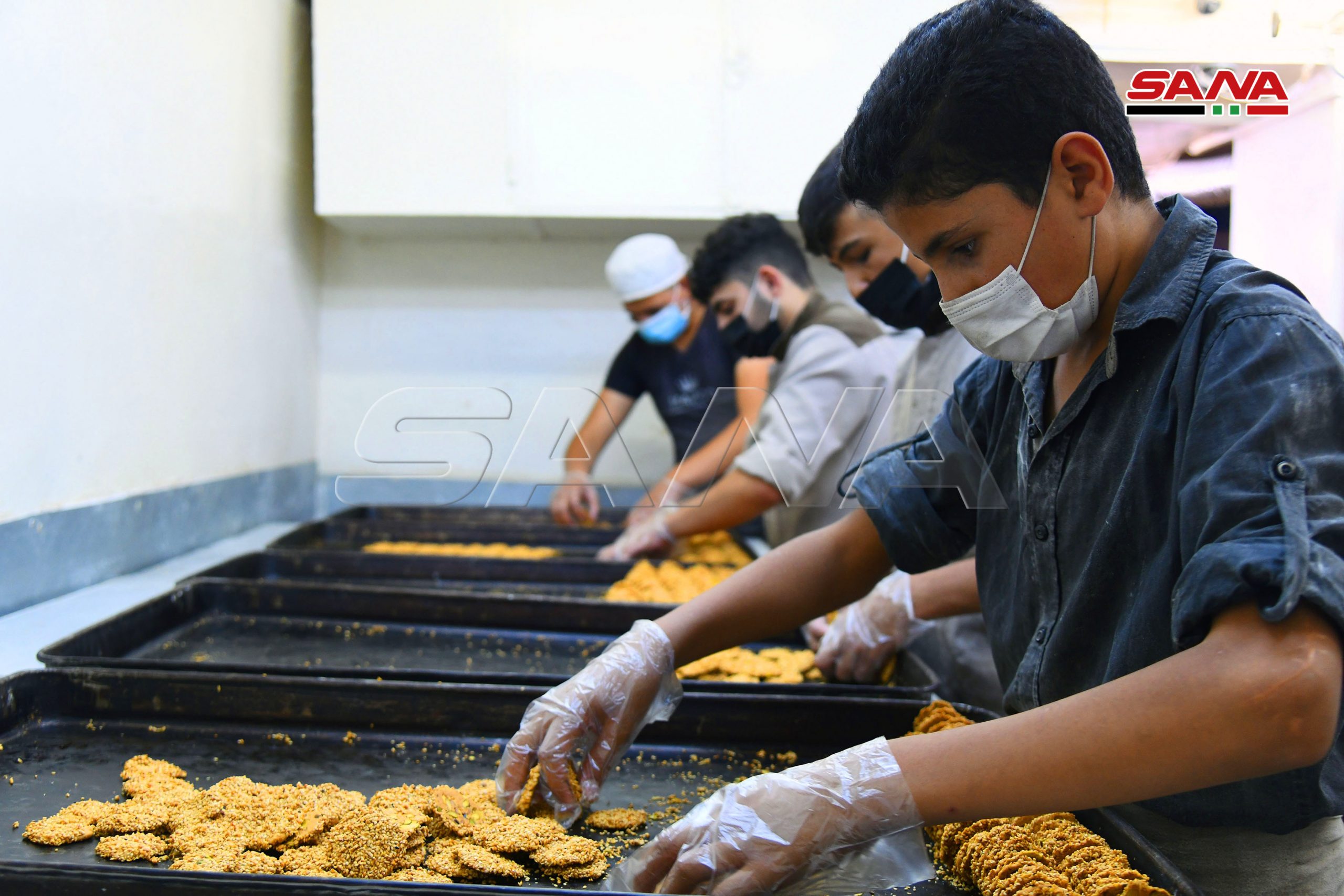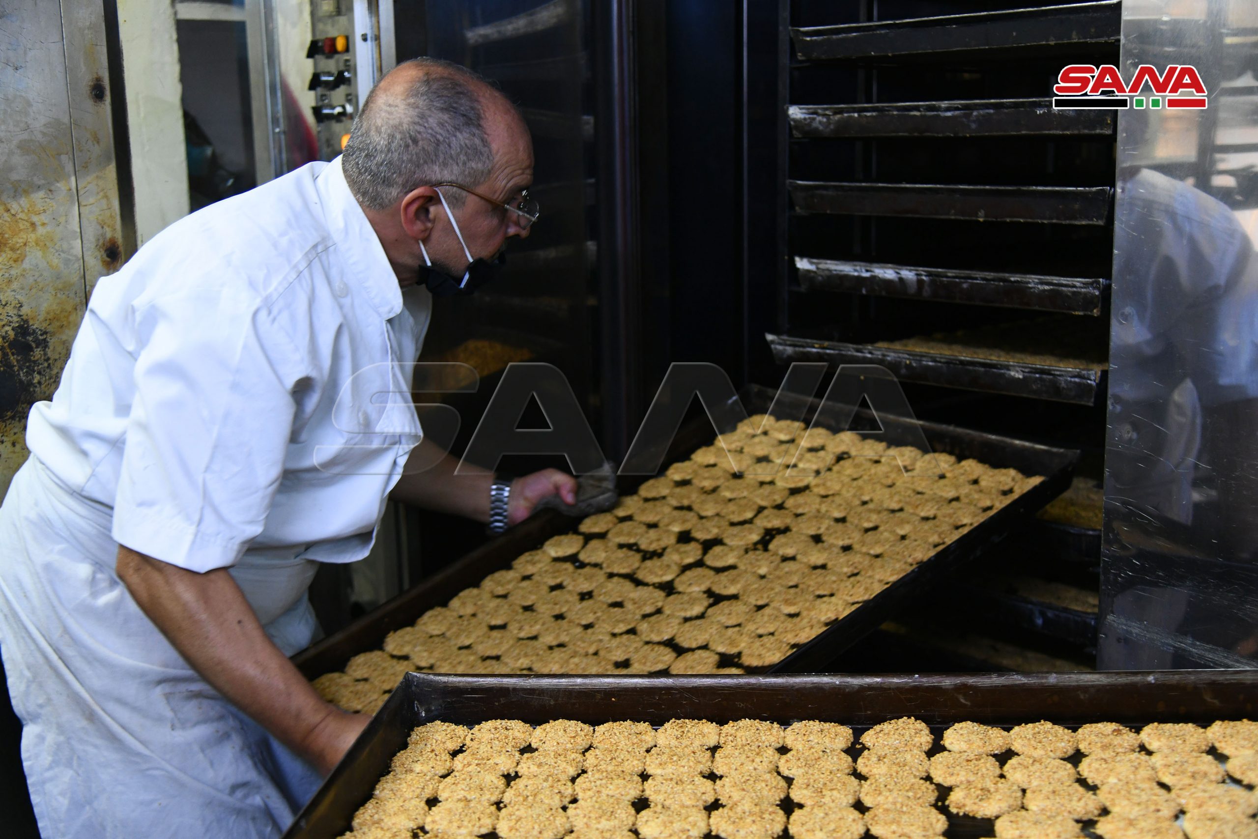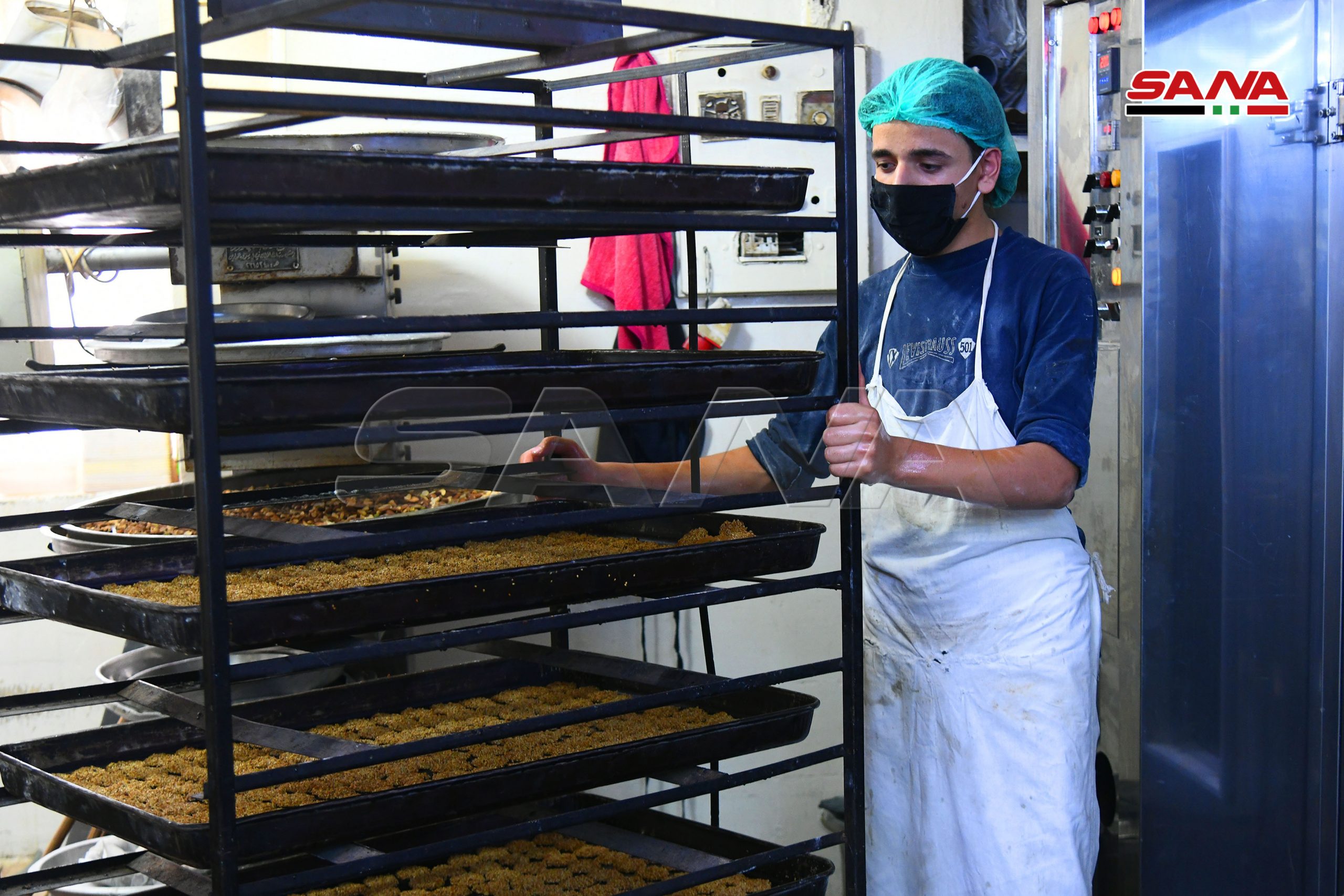 Las panaderías y tiendas de dulce árabe en la capital Damasco se preparan para Eid al-Adha (Fiesta musulmana del Sacrificio) que cae el próximo viernes y durará cuatro días.