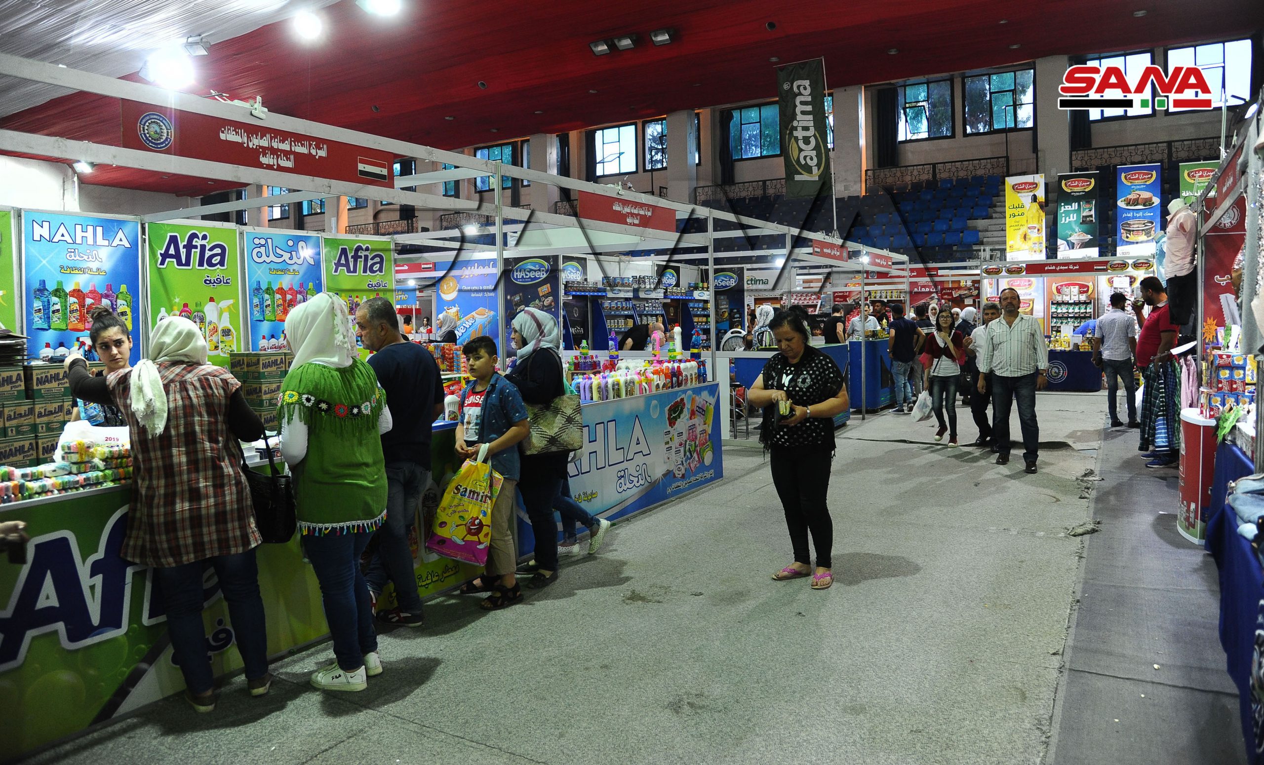 Sobre un área de más de 6.000 metros cuadrados en la antigua sede de Expo-Damasco, las empresas exhiben y ofrecen sus productos de alimentos, ropas, zapatos, detergentes, electrodomésticos, artículos de papelería y otros accesorios.