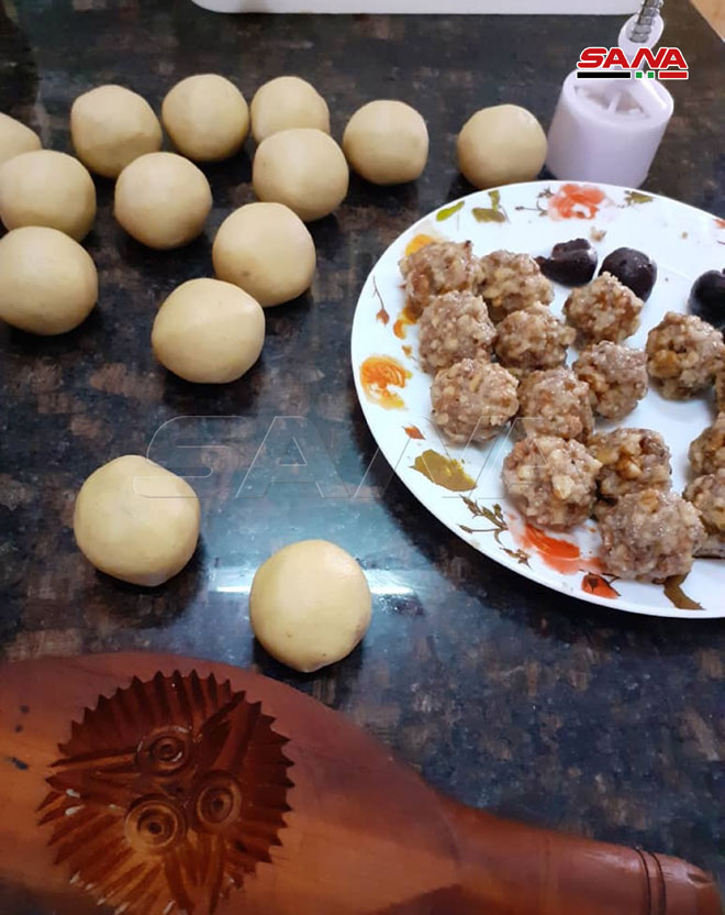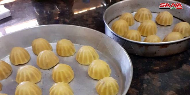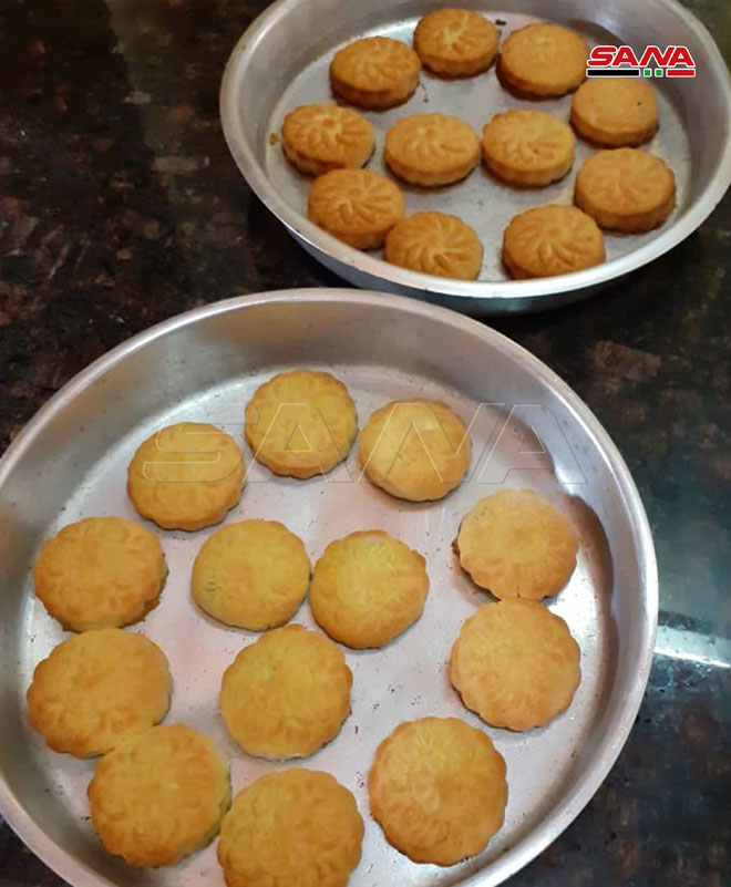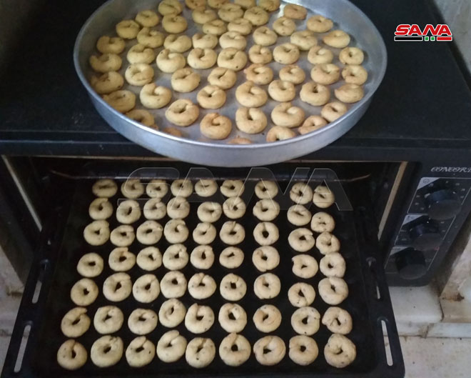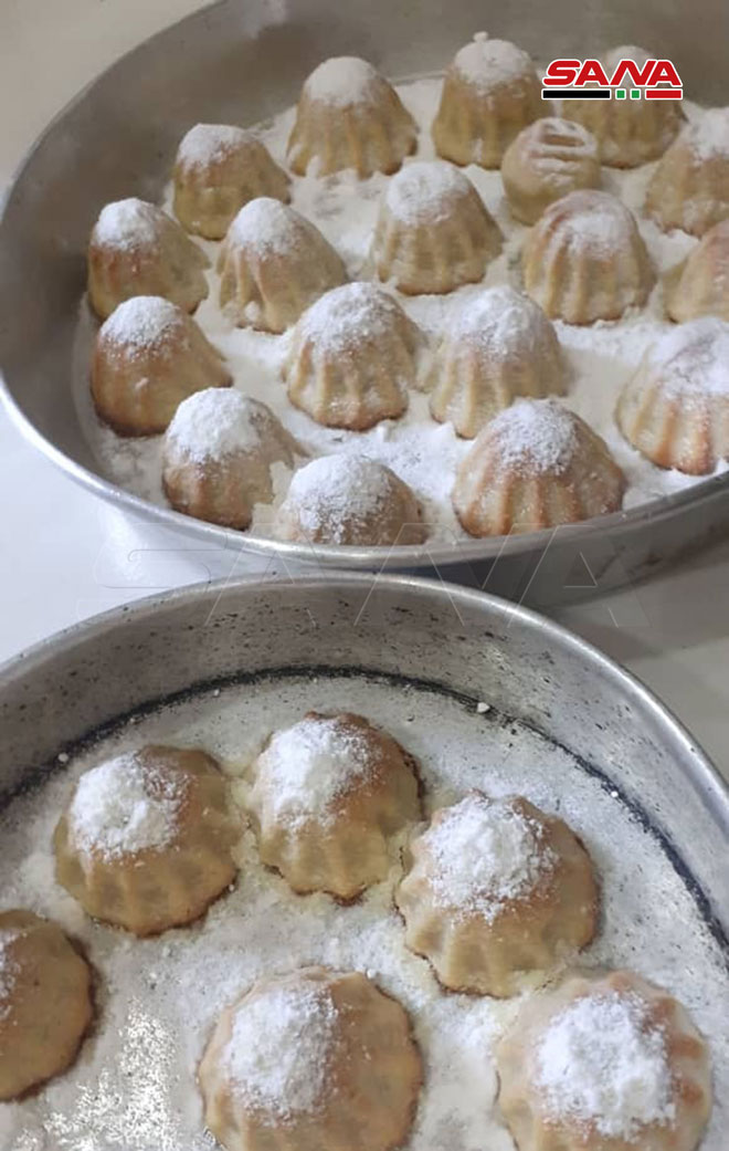 Las mujeres sirias suelen preparar en casa varios tipos de dulces del Eid (fiestas musulmanas del fin de ayuno o del sacrificio) con el fin de ofrecerlos a los visitantes como parte de una antigua tradición hospitalaria.