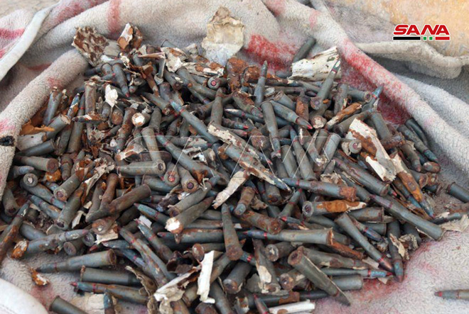Las autoridades competentes encontraron municiones de diferentes tipos y equipos de telecomunicación en un escondite de los terroristas del Daesh en la localidad de Al-Mayadeen, en la provincia oriental de Deir Ezzor.