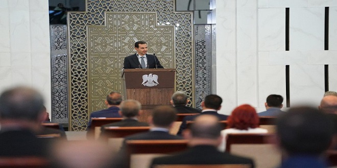 El presidente al-Assad señaló que Siria junto con el resto de los países del mundo se enfrentan a una guerra larga, e hizo hincapié en que defender a Siria forma parte del proceso que va a restablecer el equilibrio en el mundo.