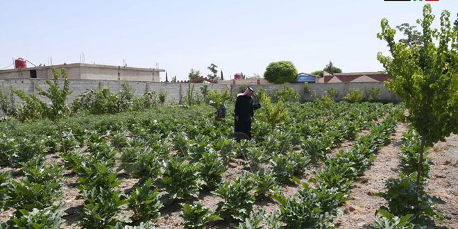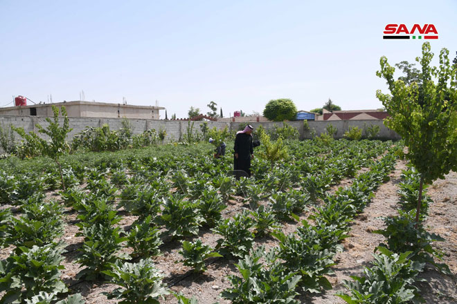 Miles de familias campesinas encontraron solución en los espacios que rodean sus casas para cultivar algunas hortalizas y legumbres y satisfacer sus necesidades alimentarias, y así lograr enfrentar las difíciles circunstancias actuales generadas por las injustas medidas económicas unilaterales impuestas a Siria.