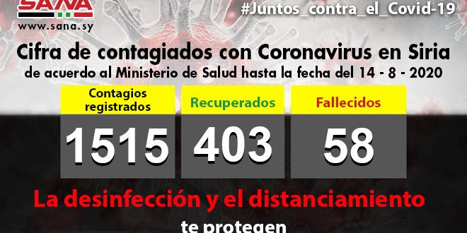 Según la nota, hubo tres fallecidos en las últimas 24 horas, lo que asciende a 58 la cifra de decesos por ese virus. Los tres muertos fueron reportados en las provincias de Tartous, Sweida y Ciudad de Damasco.
