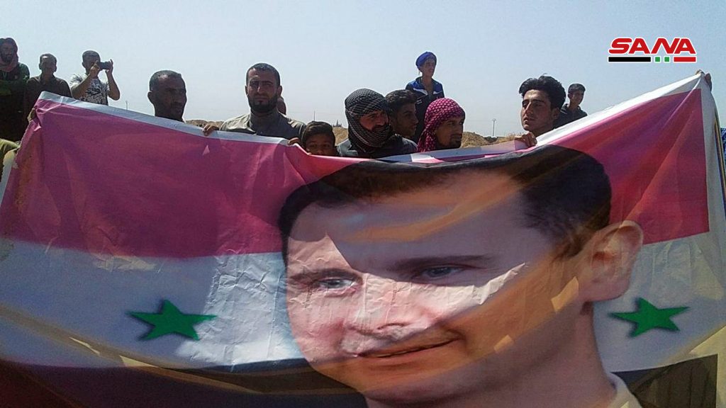 Asimismo, quemaron una bandera estadounidense como expresión de rechazo a cualquier presencia estadounidense ilegal y afirmaron que el ataque contra un punto de control del ejército sirio es una agresión y un crimen contra cada ciudadano sirio.