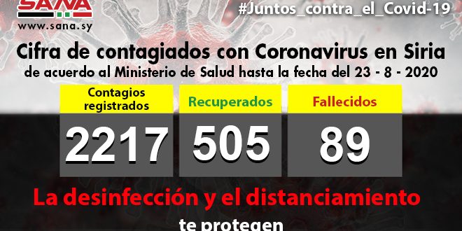 La mayoría de los nuevos casos positivos fueron confirmados en Damasco (19), Alepo (15), Latakia (14), Sweida (9) y Homs (6), mientras los fallecidos se reportaron en Alepo, Damasco, Homs y Latakia.
