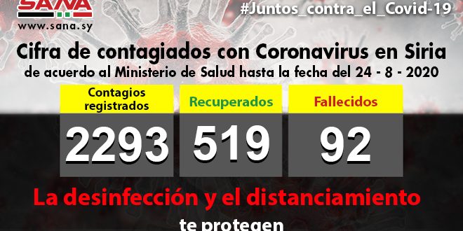 Agregó que tres pacientes fallecieron (dos en Damasco y uno en Homs) lo que elevó a 92 la cifra de decesos por ese virus.
