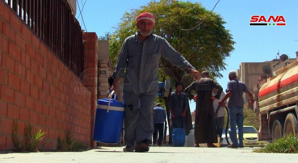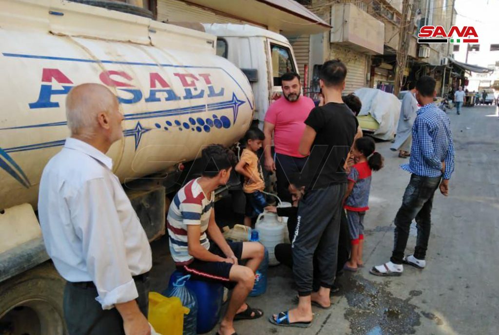 Decenas de niños, viejos y mujeres se aglomeran cada día alrededor de camiones cisterna enviados por el gobierno en cooperación con las organizaciones internacionales, sin embargo, esa cantidad no satisface las necesidades de la gente, sobre todo aquella que vive bien lejos del centro de la ciudad.