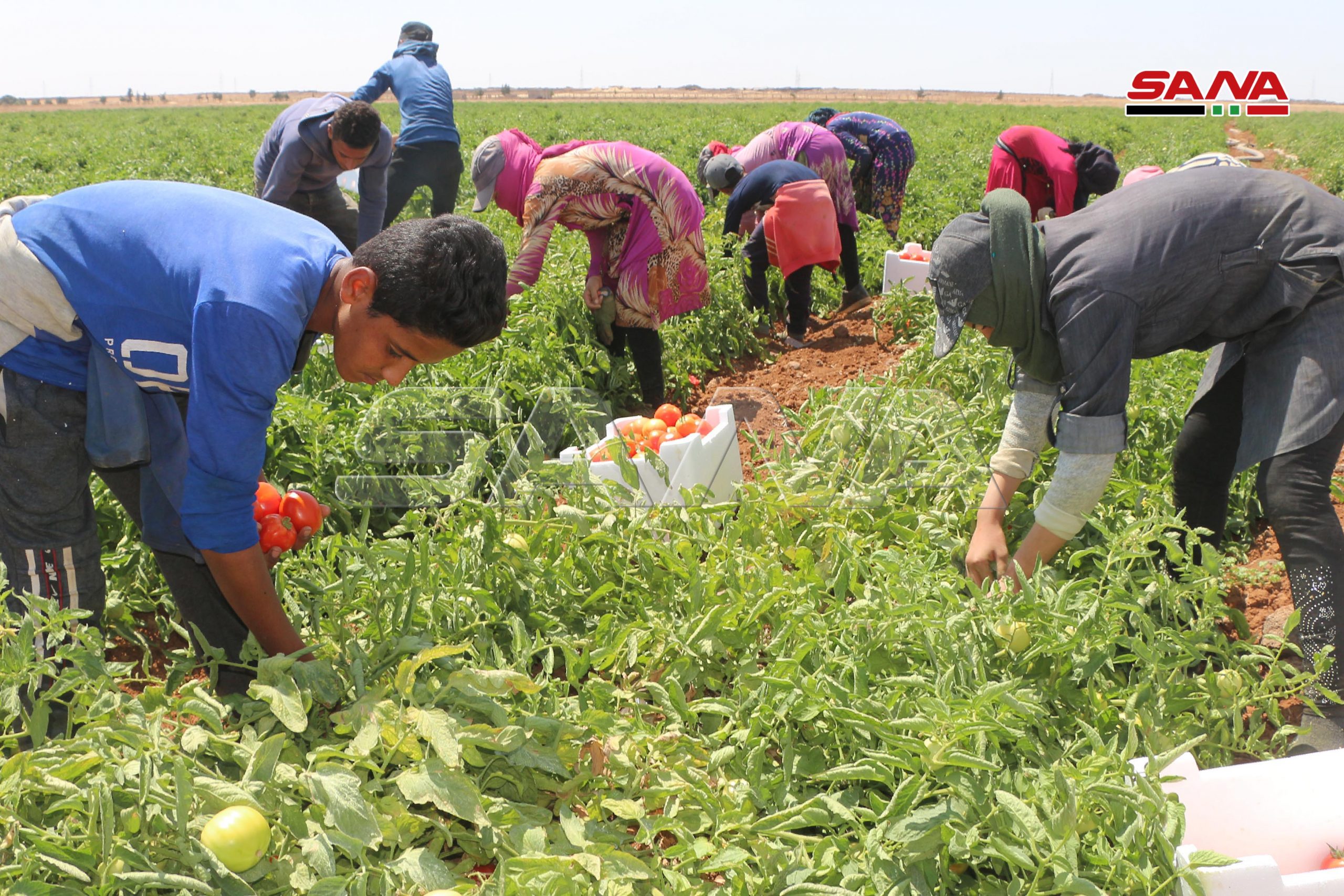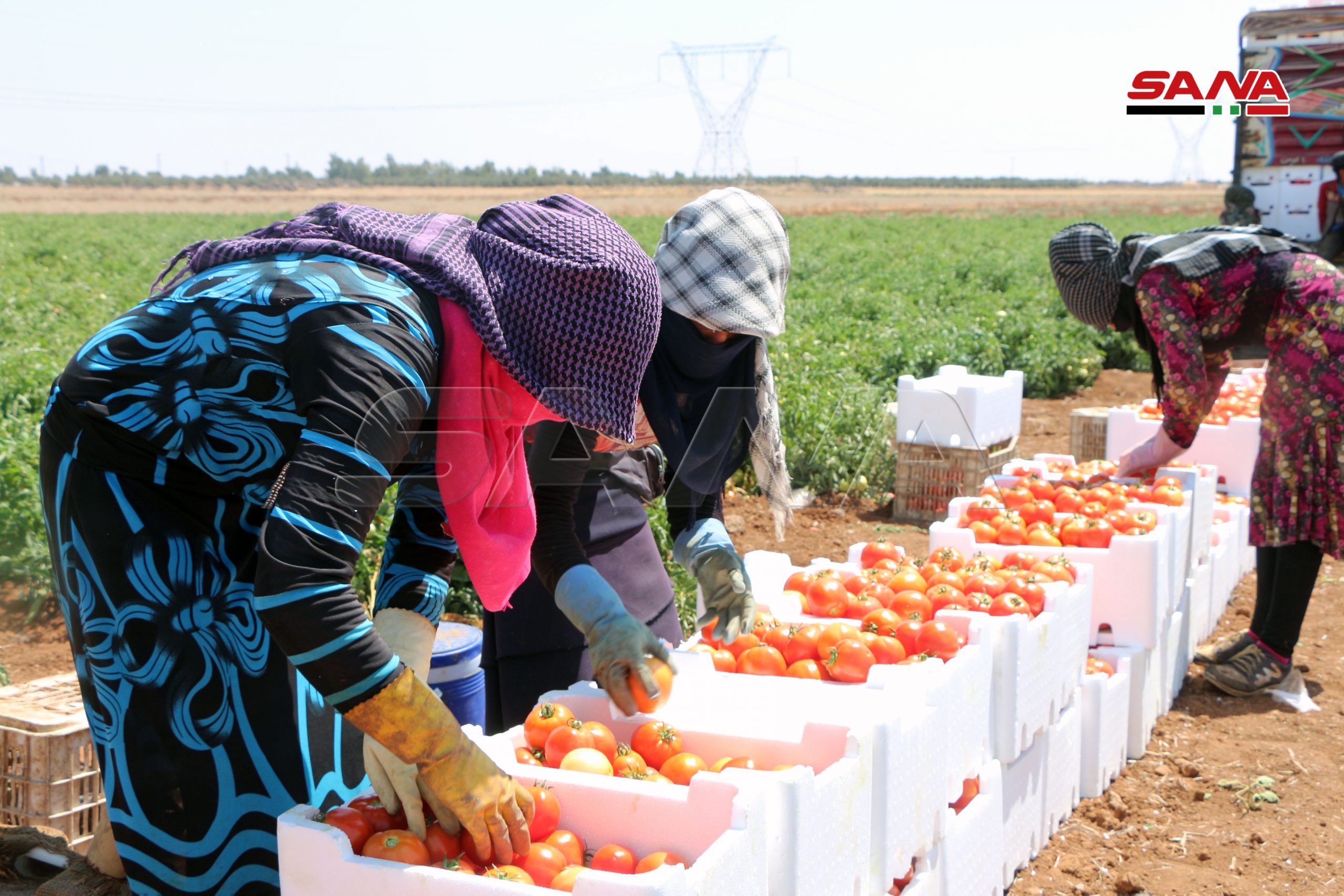 Los agricultores de la provincia sureña de Deraa comenzaron la cosecha de tomates.