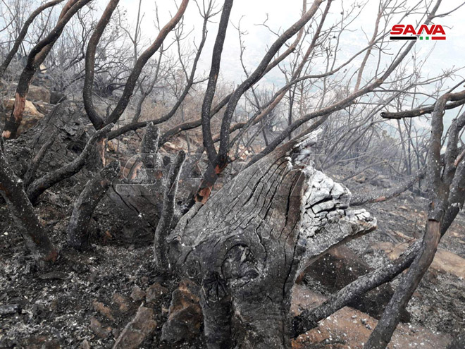 Fuerzas terrestres del Ejército Árabe Sirio participan en contención de incendios en provincia de Hama