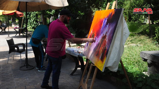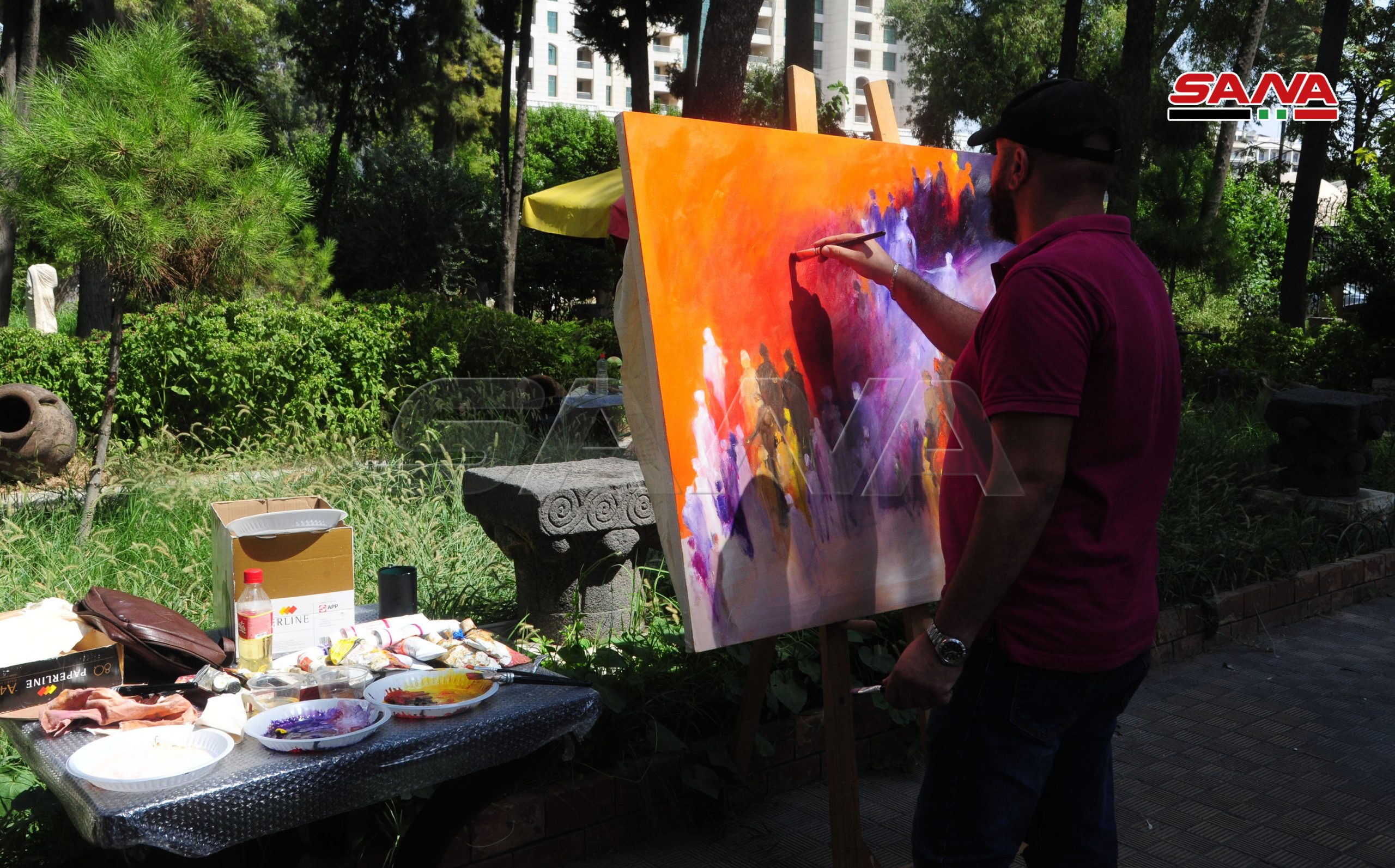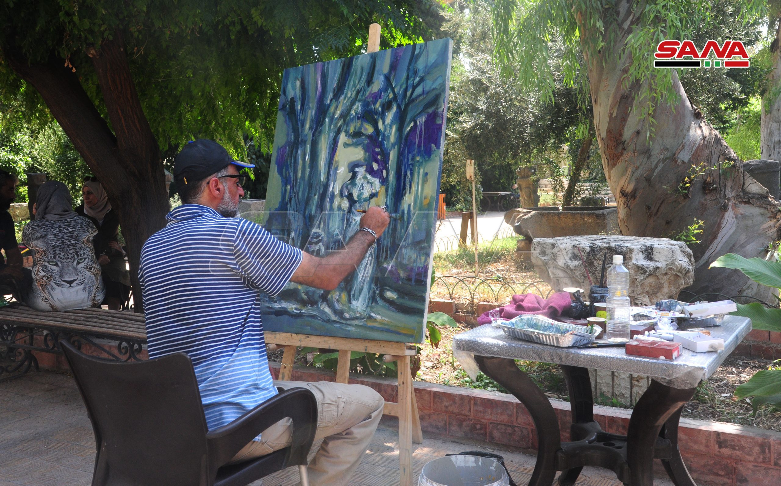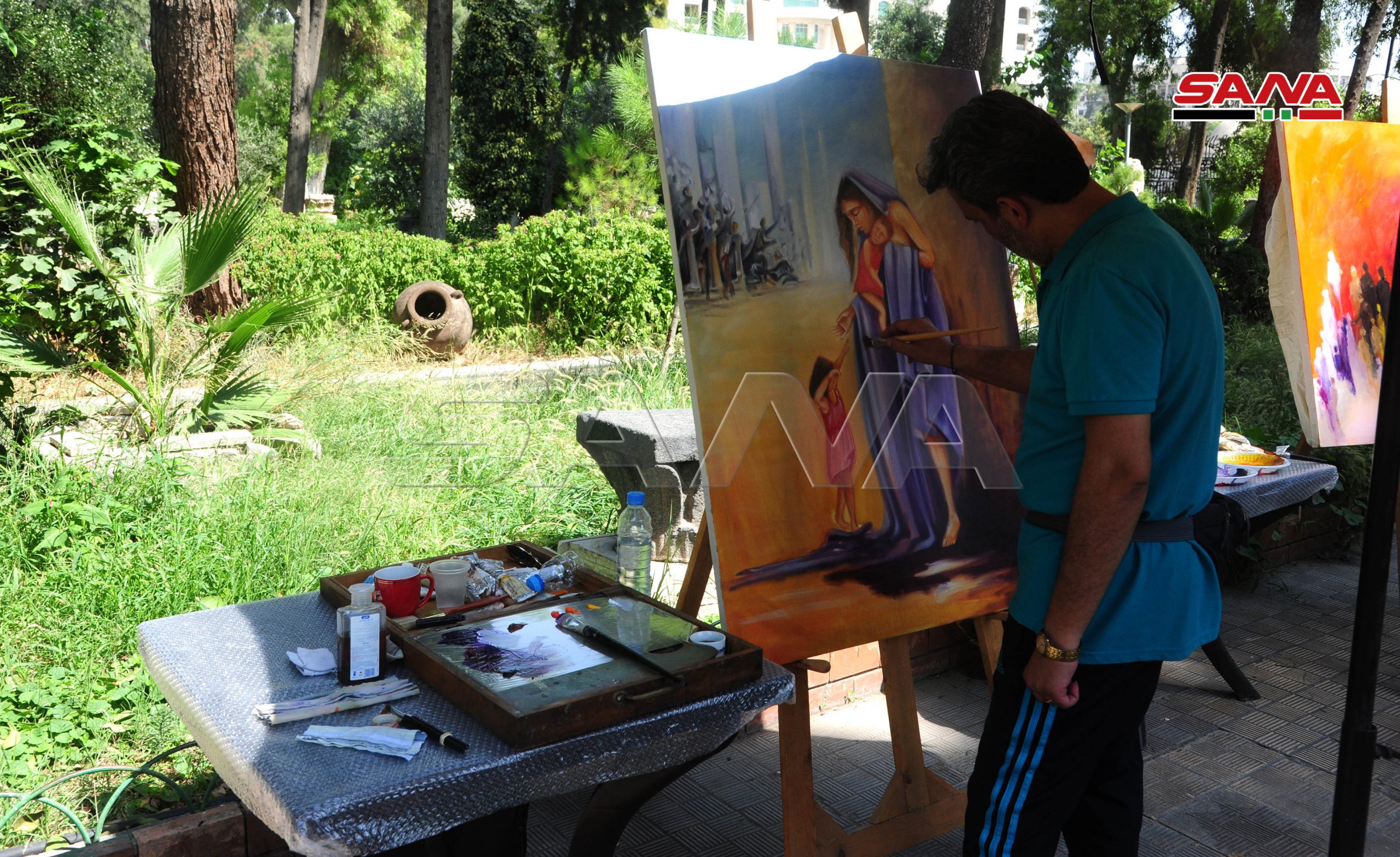 El evento es organizado por la Dirección de Bellas Artes del Ministerio de Cultura y en el mismo cada artista dibuja dos cuadros que refleja sus visiones del lugar que acoge piezas del patrimonio cívico y cultural de Siria.