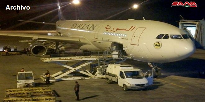 El Ministerio de Transporte anunció hoy que un avión de pasajeros de “Syrian Airlines” aterrizó en el Aeropuerto Internacional de Damasco con 194 ciudadanos sirios a bordo.