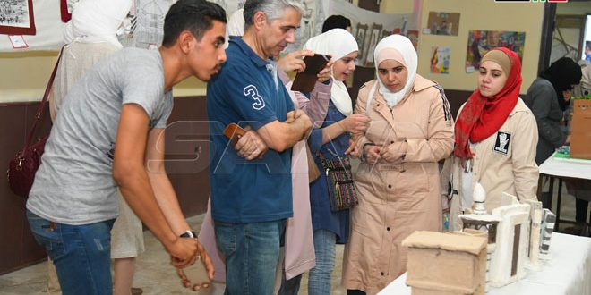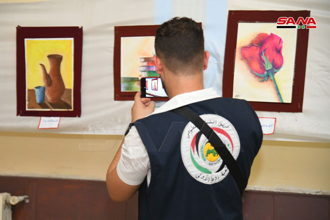 Los departamentos de Cultura y de Asuntos Sociales y Trabajo en la provincia de Damasco-Campo organizaron una exposición de obras artísticas en la liberada ciudad de Duma, la mayor en la provincia de Damasco-Campo y ubicada a unos 15 kilómetros al este de Damasco.