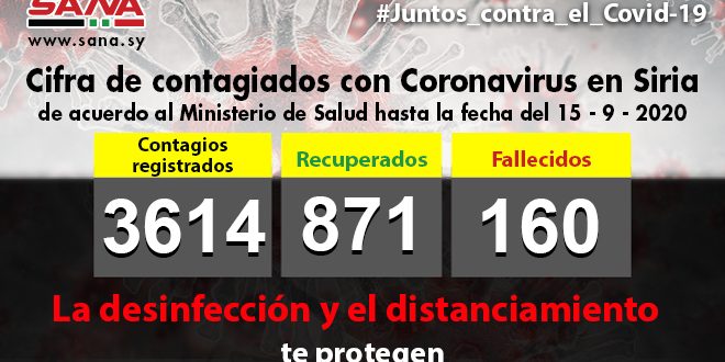 En las últimas 24 horas, se confirmaron en Siria 38 nuevos casos de nuevo Coronavirus y la cifra total llegó a tres mil 614”, informó un comunicado del Ministerio de Salud.