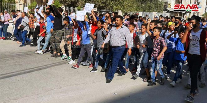 Cientos de estudiantes e integrantes del personal docente protestaron hoy contra la milicia Fuerzas Democráticas de Siria (FDS), mercenaria de Washington, que se apoderó de cientos de escuelas en la provincia nororiental siria de Hasakeh.