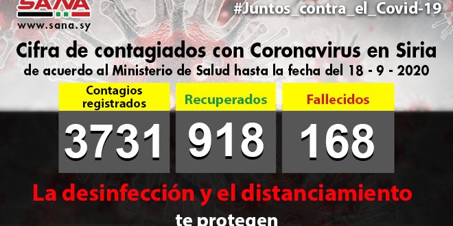 El Ministerio de Salud de Siria anunció que, en las últimas 24 horas, fueron confirmados 40 nuevos casos que dieron positivo al virus SARS-COV-2 causante de la enfermedad Covid-19.
