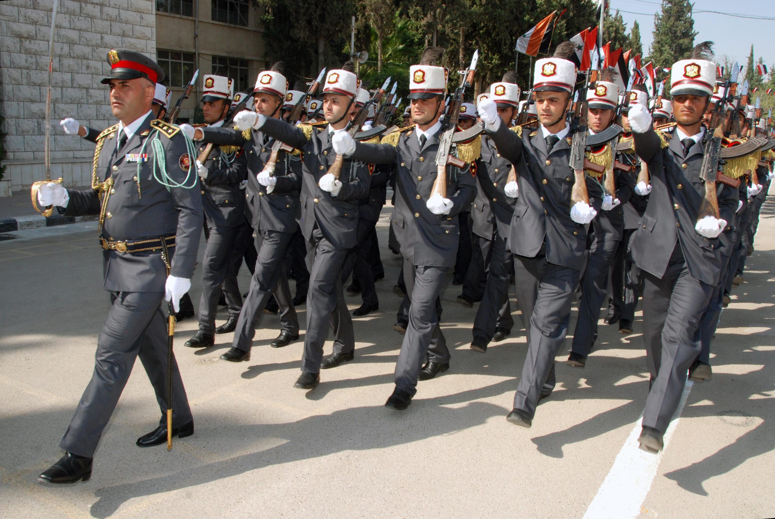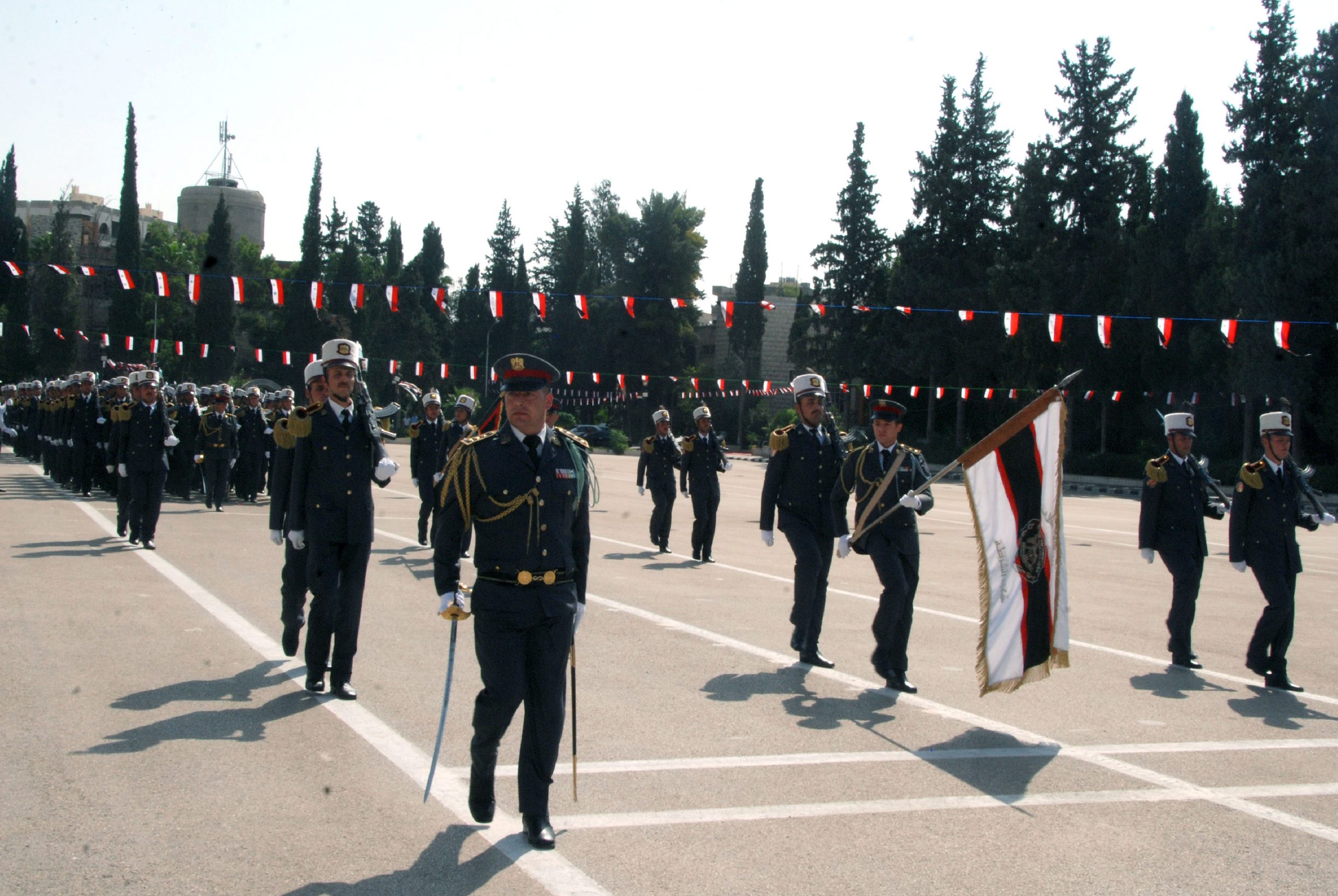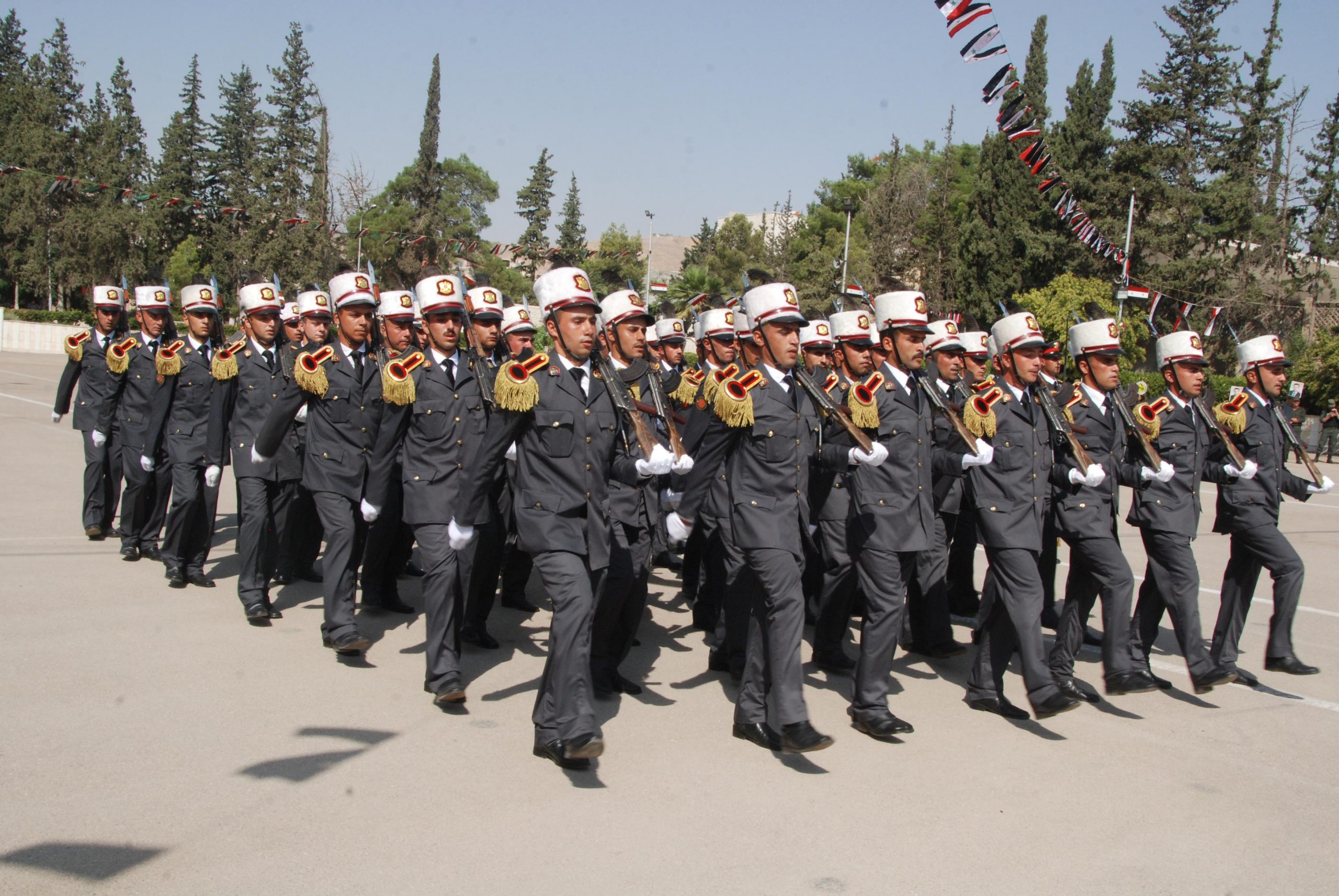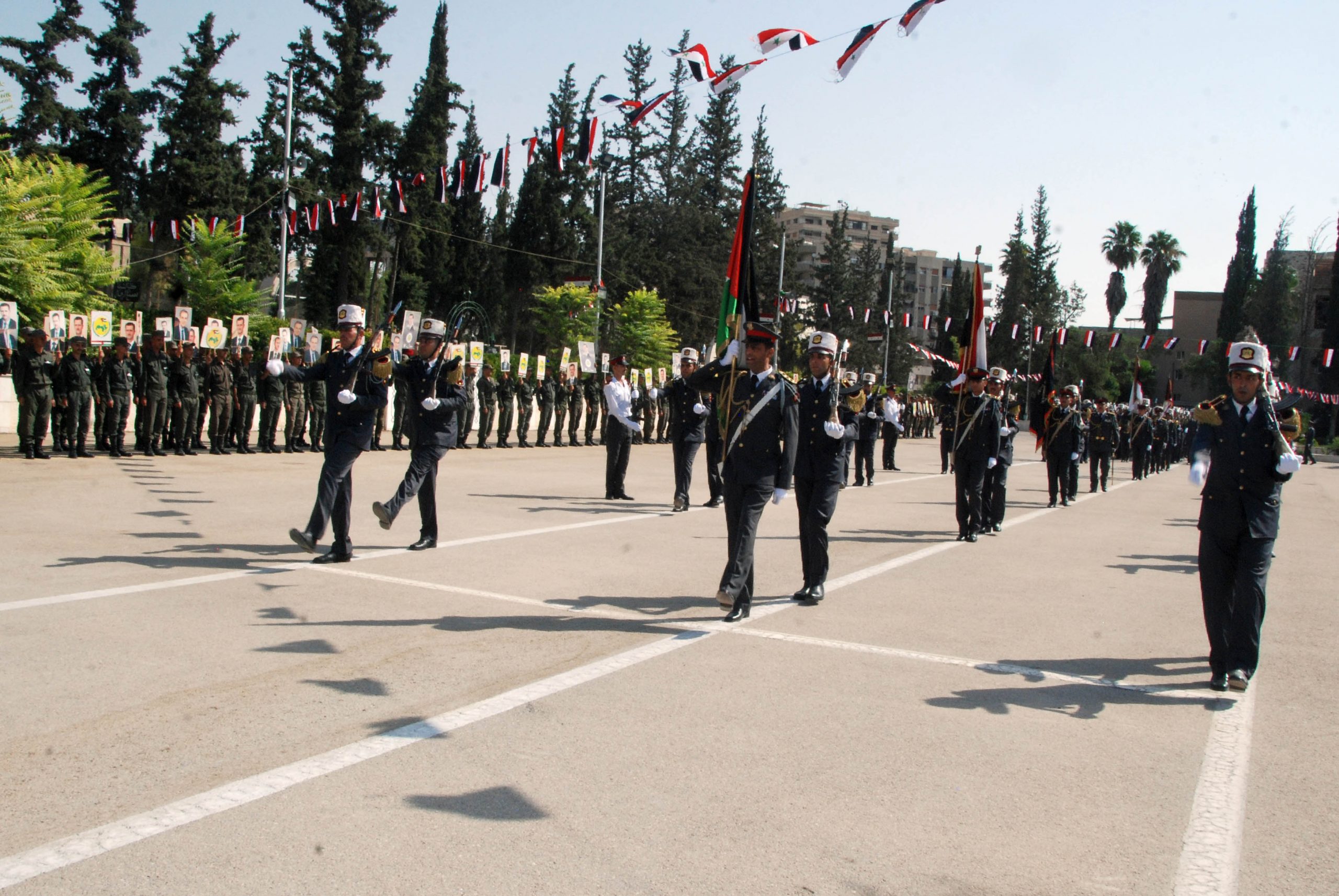 El acto de graduación tuvo lugar en la sede de la Academia de Policía en Damasco e incluyó un desfile militar y la ceremonia de juramento de los egresados.