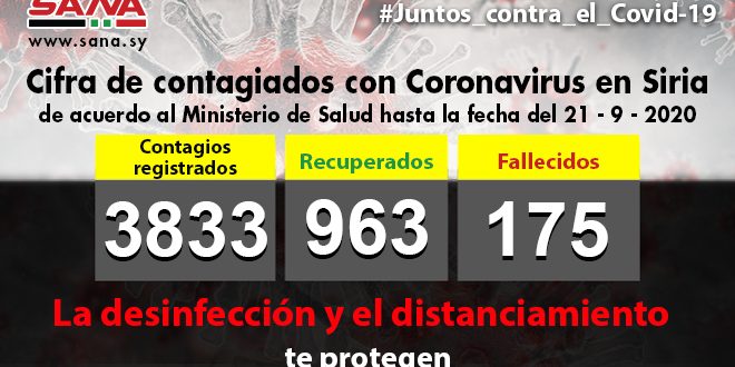 El Ministerio de Salud de Siria anunció que, en las últimas 24 horas, fueron confirmados 33 nuevos casos que dieron positivo al virus SARS-COV-2 causante de la enfermedad Covid-19.