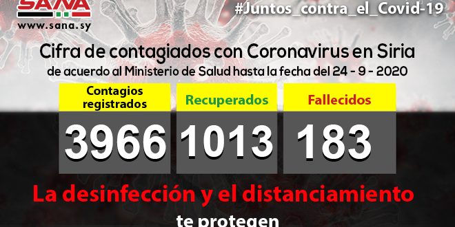 La cifra de contagiados por Covid 19 en Siria llegó a tres mil 966, al reportarse 42 casos en las últimas 24 horas, según informó el Ministerio de Salud.