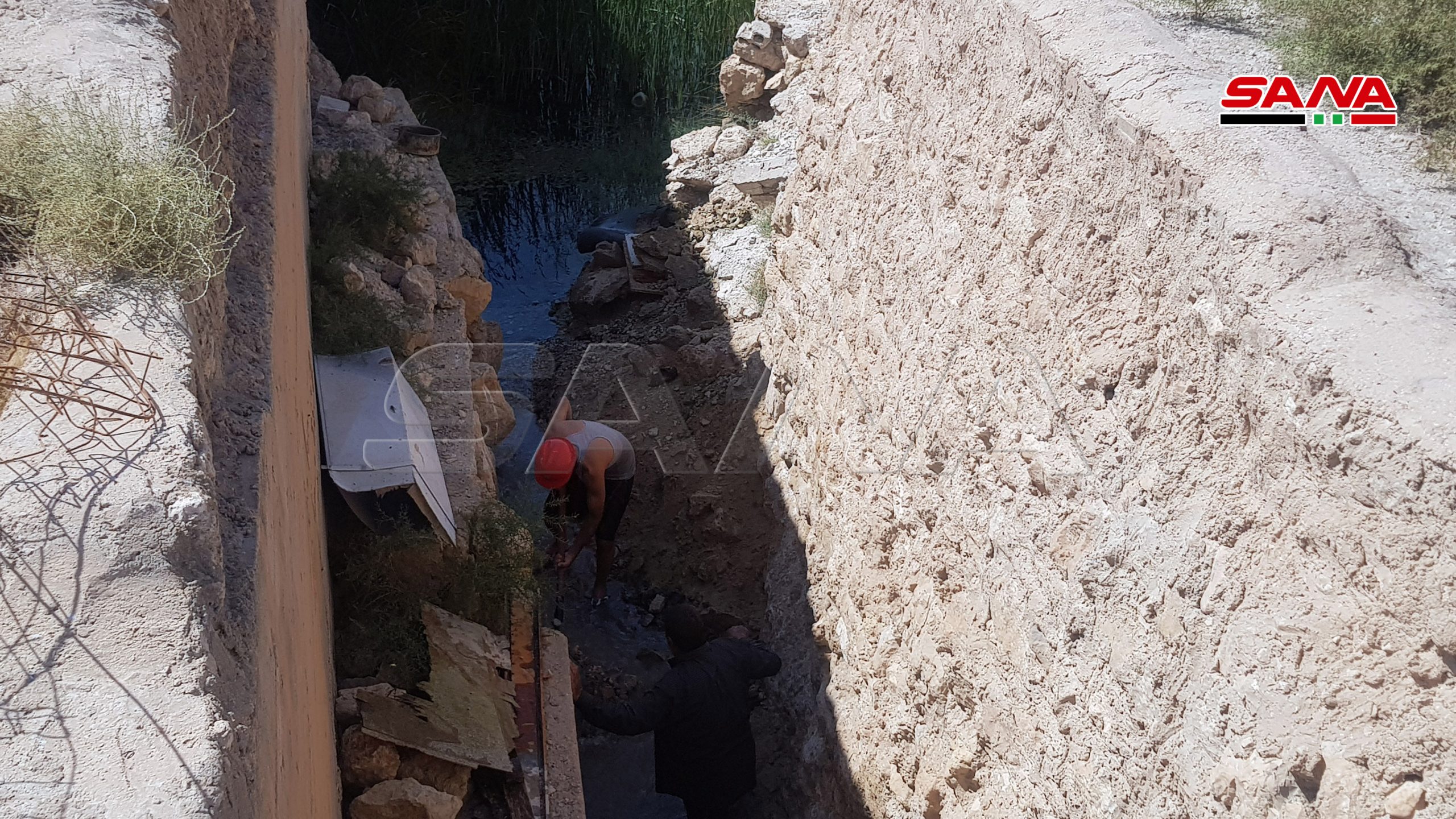 El proyecto que ejecutan la gobernación de Homs, el ayuntamiento de Palmira y la Dirección de Antigüedades, tiene como objetivo restaurar el canal de agua del manantial que volvió a fluir en enero del 2019 tras 25 años de sequía, lo que ayudará a los habitantes y campesinos a regresar a sus tierras agrícolas que los terroristas intentaron sabotear.