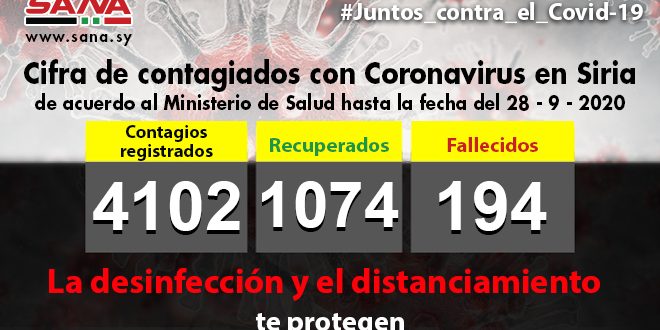 El Ministerio de Salud de Siria anunció que 30 personas dieron positivo al nuevo Coronavirus lo que asciende a cuatro mil 102 la cifra a nivel nacional.