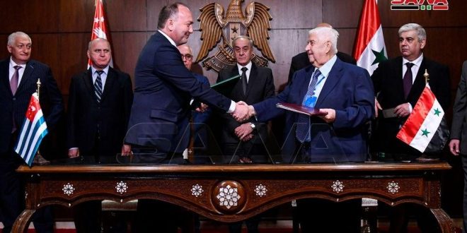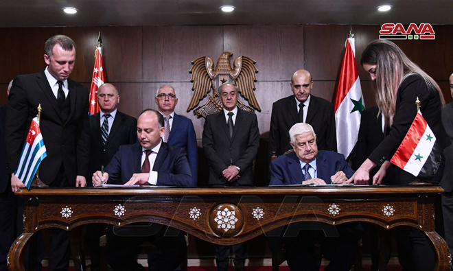 A su vez, el canciller al-Moallem dio la bienvenida a la delegación y elogió las firmes posiciones de principio de Abjasia en apoyo al pueblo sirio.