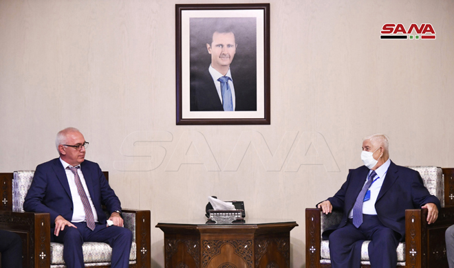 El Viceprimer Ministro y Ministro de Exteriores y Expatriados, Walid al-Moallem, recibió hoy a una delegación de la República de Abjasia conformada por Alkhas Kvitsynia Alekseevich, Jefe del Buró del presidente abjasio, y Dauer Kovey Vadimovich, Ministro de Exteriores de esta república rusa.