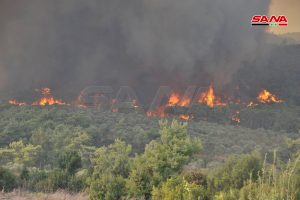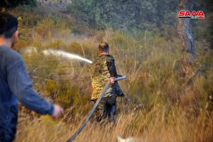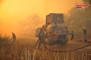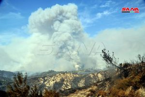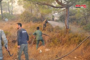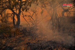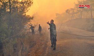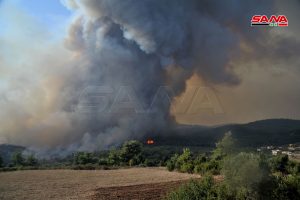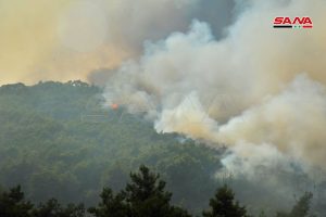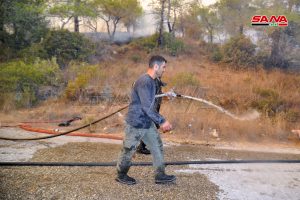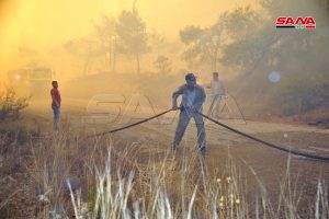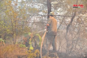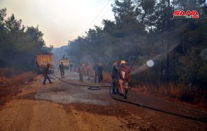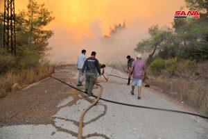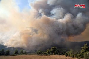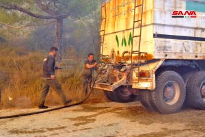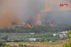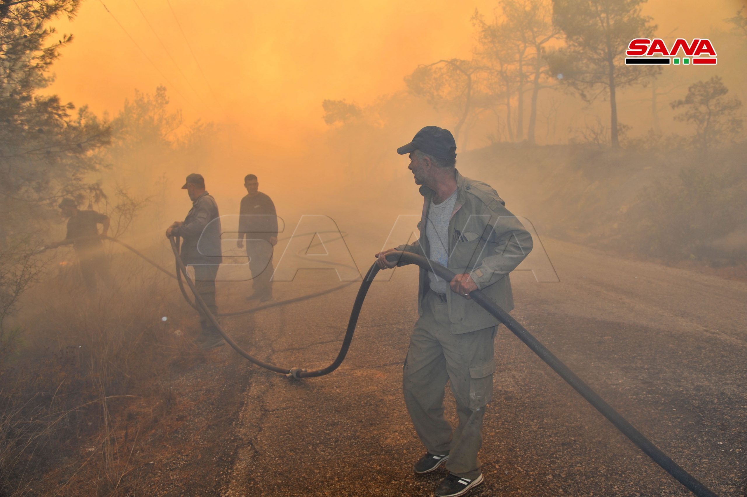 Cuerpos de bomberos de todas las provincias luchan en estos momentos para controlar los incendios que afectaron hasta el momento a extensas áreas de bosques y tierras agrícolas en la provincia de Latakia.