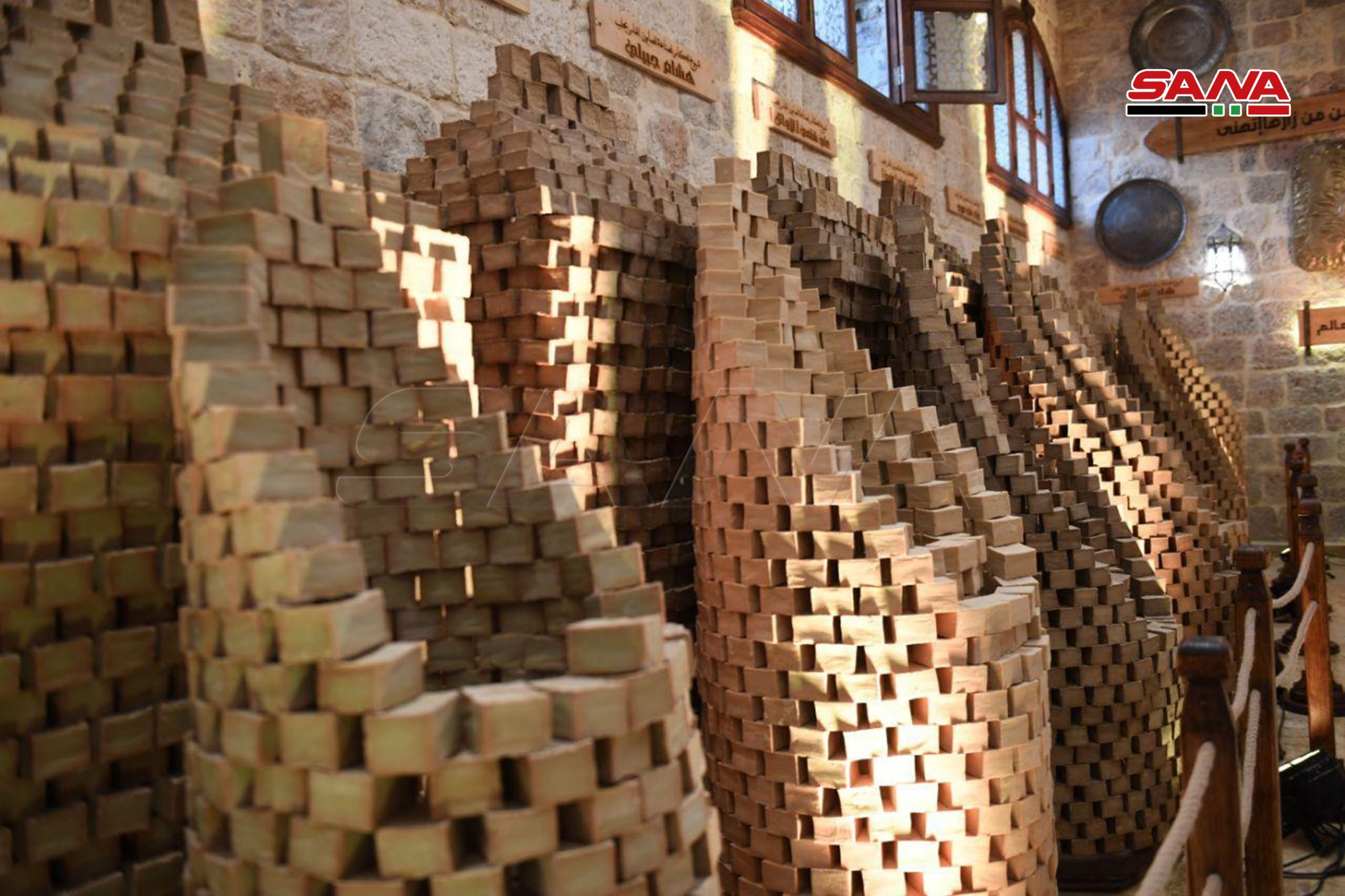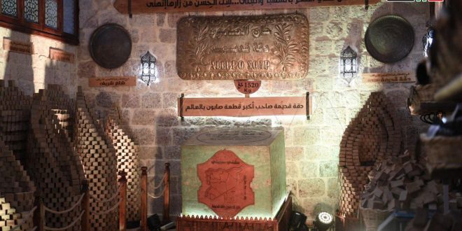 Sharaf Al-Din Dahan, director de marketing y producción en Khan Al Saboun, explicó a SANA que el mismo fue destruido por el terrorismo y se restauró para preservar esa profesión ancestral de Alepo, que es la industria del jabón.