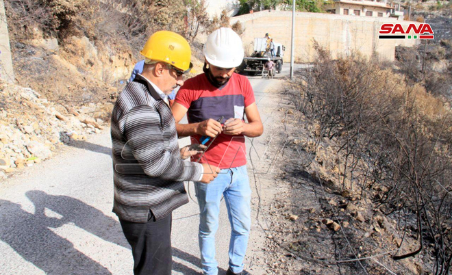 El personal técnico de la Compañía de Electricidad de la provincia de Tartous completó las obras de reparación de las líneas de electricidad dañadas por los recientes incendios en la región costera.