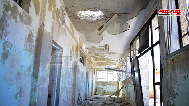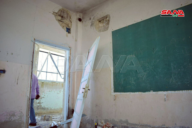 El director de educación provincial Emmad Assad, declaró a SANA, que la agresión provocó un agujero en el techo de la escuela, además de romper las puertas y las ventanas de la misma y causar daños en su estructura.