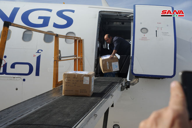 Aterrizó en el Aeropuerto Internacional de Damasco un avión con ayuda médica ofrecida por Organización Mundial de la Salud (OMS) a Siria para mejorar la respuesta de las instituciones de salud a la pandemia de Covid-19.