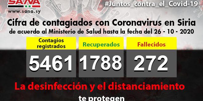 El Ministerio de Salud de Siria confirmó 53 nuevos casos de Covid-19 para un acumulado de cinco mil 461.