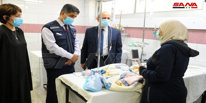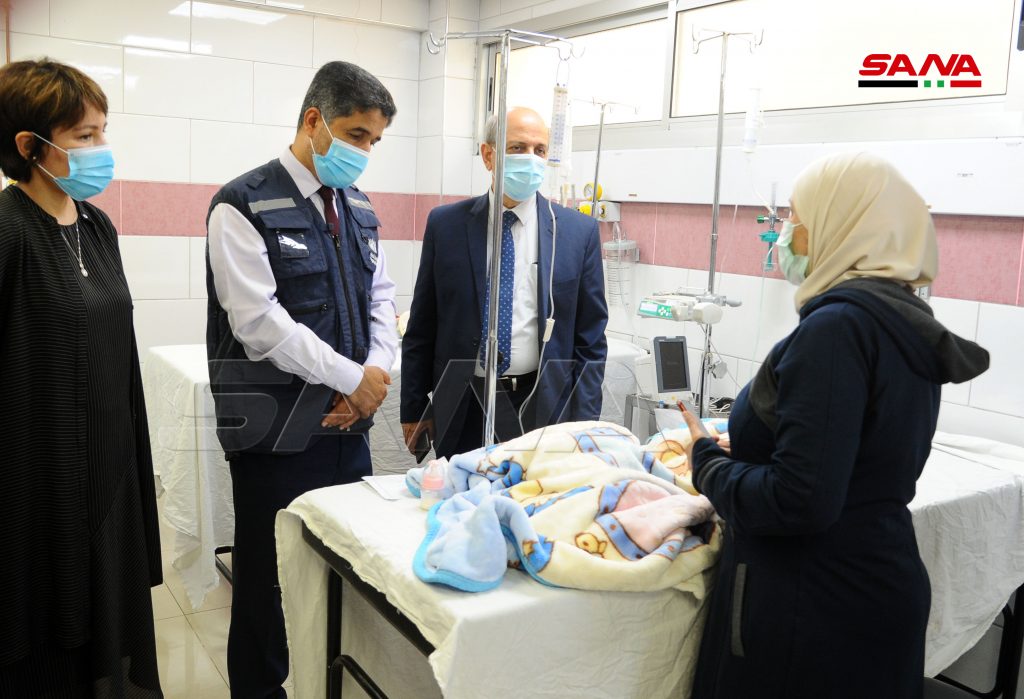 Una delegación de la Organización Mundial de Salud (OMS), presidida por el director regional del Mediterráneo Oriental, Ahmad al-Manzari, y la representante de esta entidad en Siria, Akjemal Magtymova, recorrió el Hospital Pediátrico Universitario de Damasco.