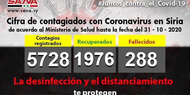 El Ministerio de Salud de Siria confirmó 45 nuevos casos de Covid-19 para un acumulado de cinco mil 728.