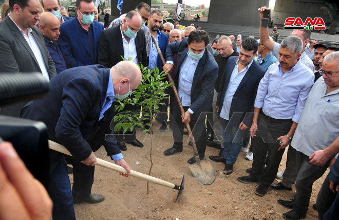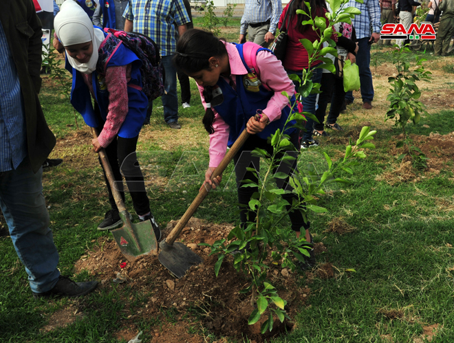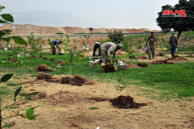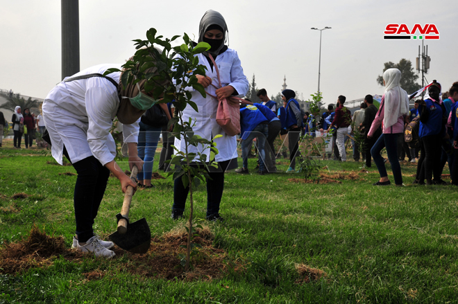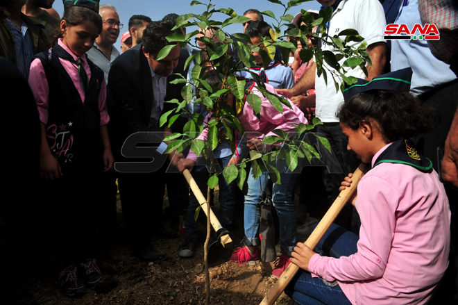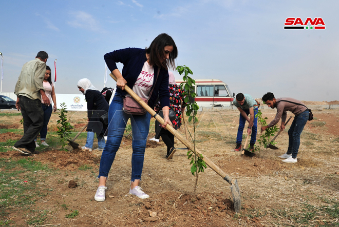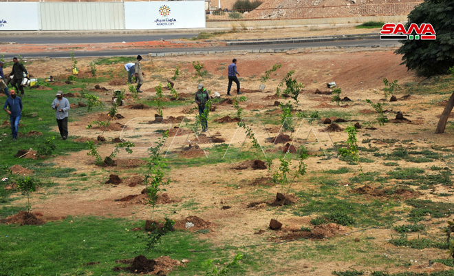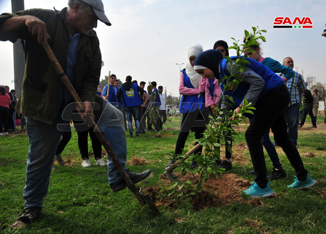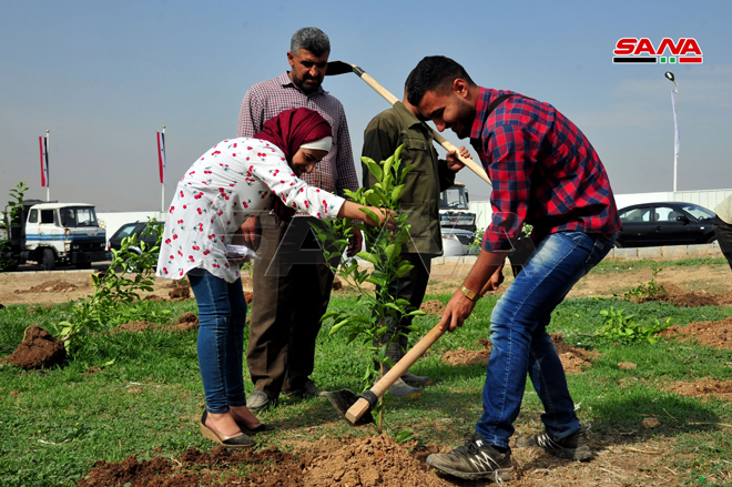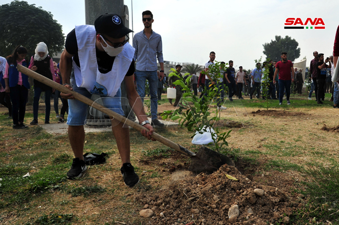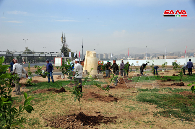 Como parte de las actividades del Día Nacional del Medio Ambiente, la Gobernación de Damasco, en cooperación con el Ministerio de Administración Local y Medio Ambiente, organizó una campaña de siembra de naranjos, olivos y pinos en áreas de la Circunvalación Sureña de la Capital.