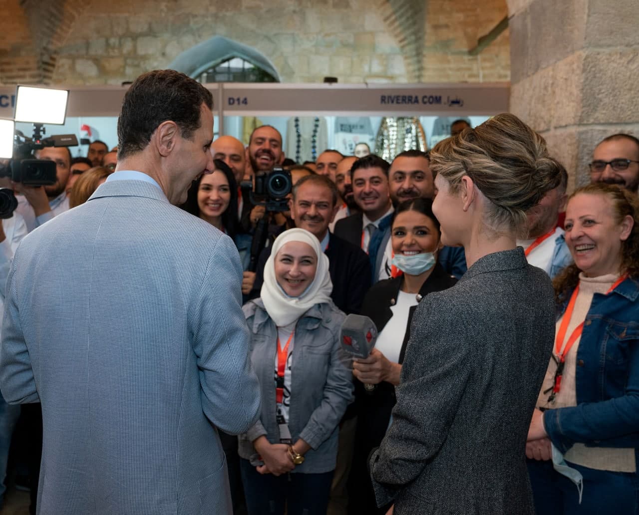 Al-Assad y Asma efectuaron un recorrido por los pabellones de la feria y escuchó a los participantes y productores sobre su participación y su importancia como plataforma para la comercialización y promoción interna y externa de los productos de las fábricas que recuperaron su producción gracias al apoyo brindado a las pequeñas y medianas empresas con el fin de romper el cerco.