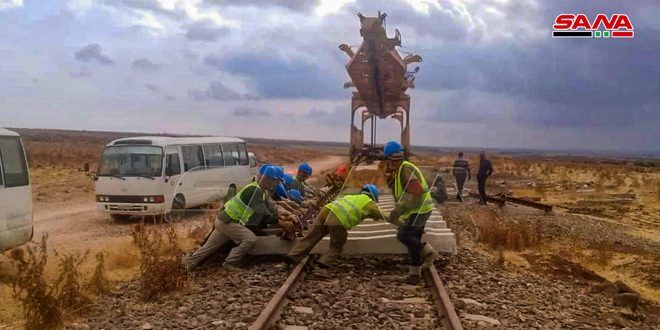 Los trabajadores de la Empresa Estatal de Ferrocarriles concluyeron la rehabilitación de las líneas férreas dañadas por el terrorismo en la provincia central de Hama.