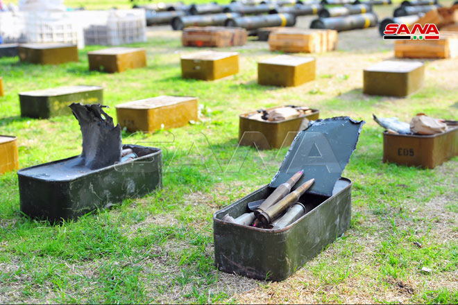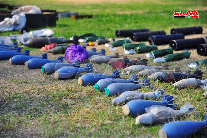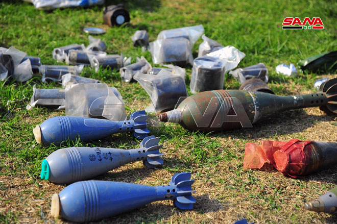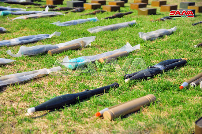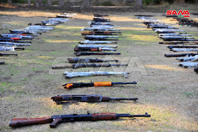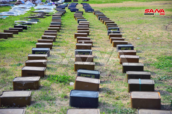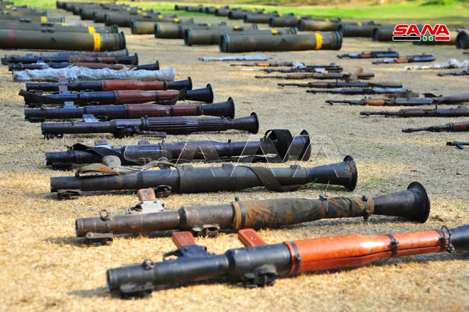 Las autoridades competentes incautaron grandes cantidades de armas y municiones remanentes de las agrupaciones radicales que fueron derrotadas a manos del ejército sirio en la región sur del país.